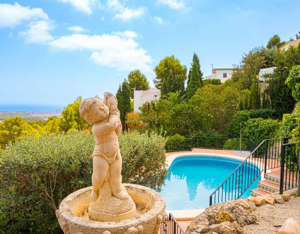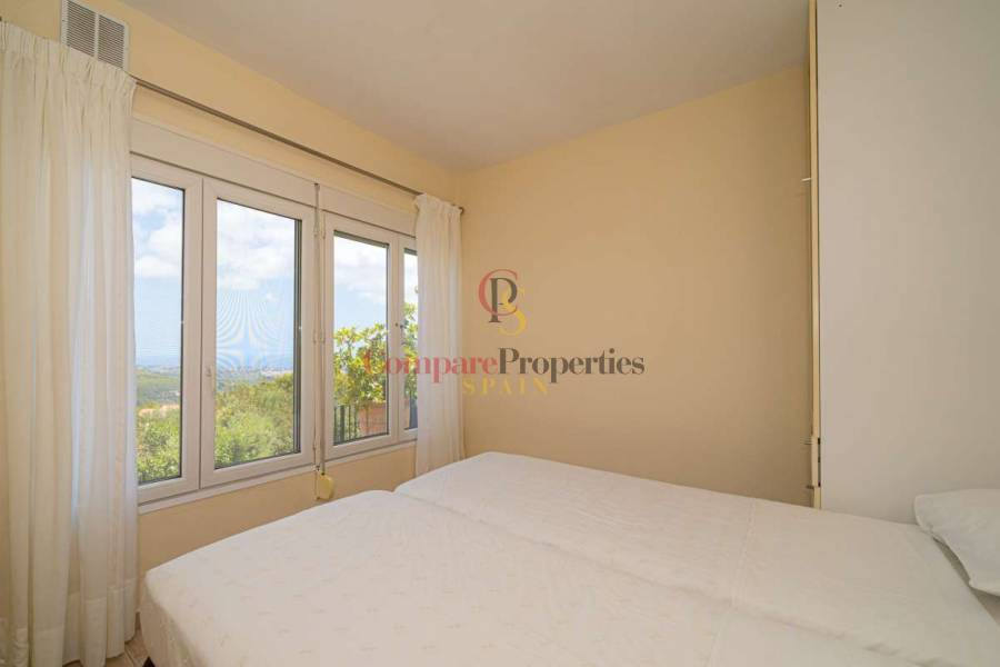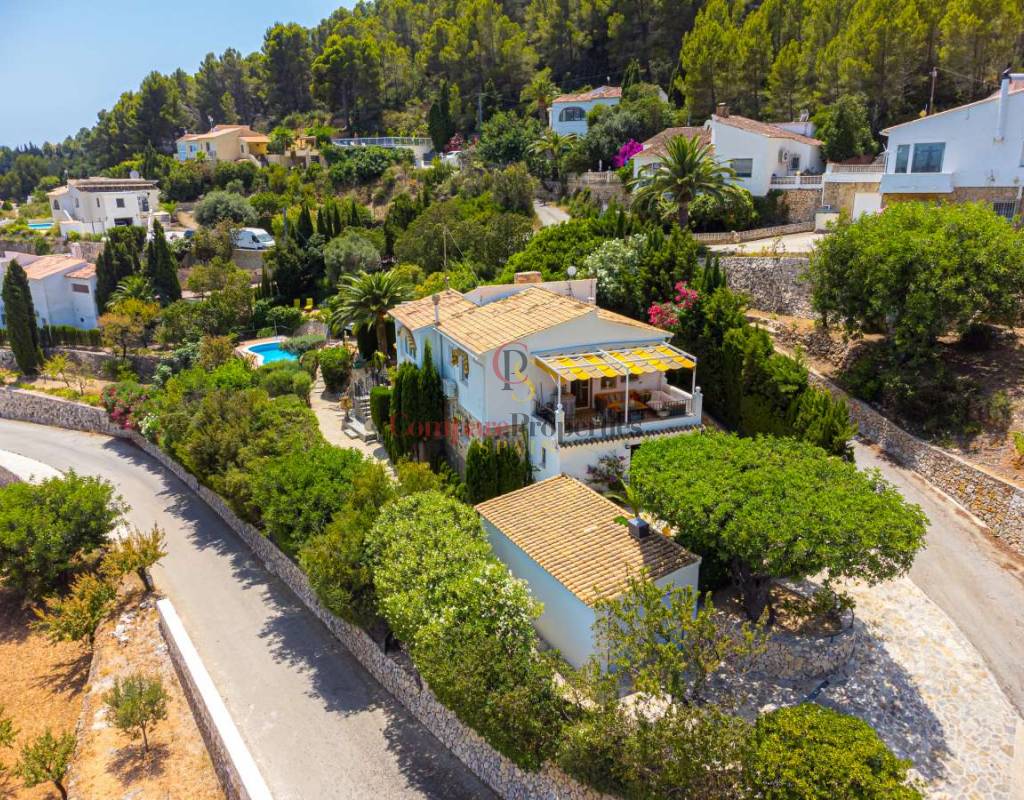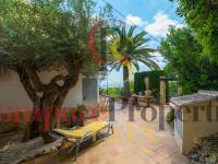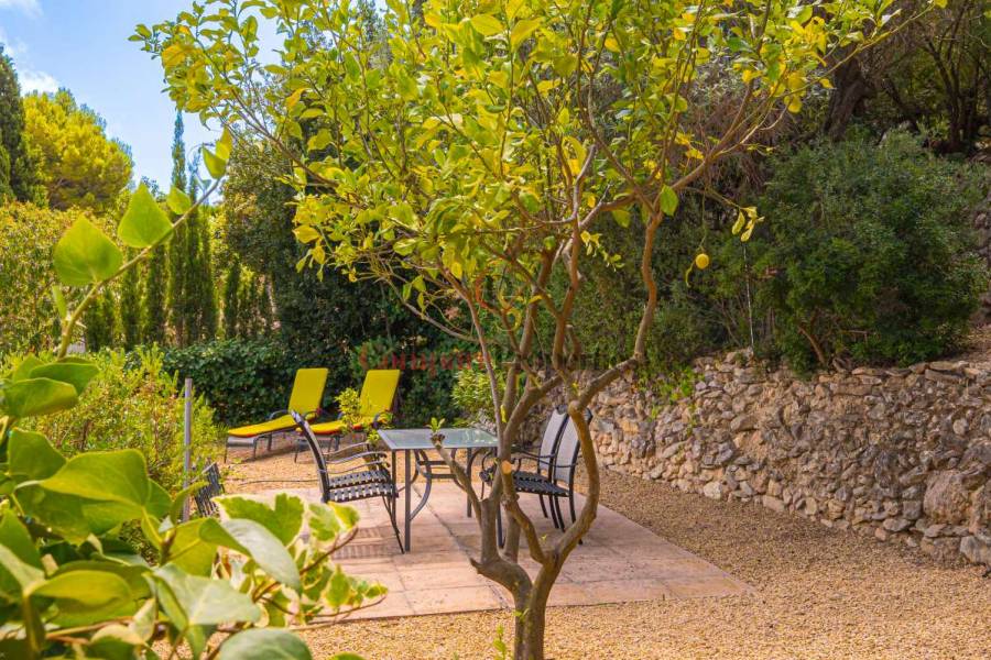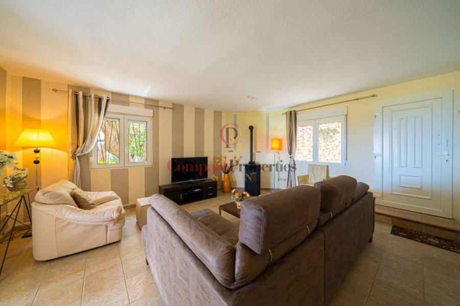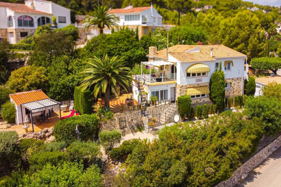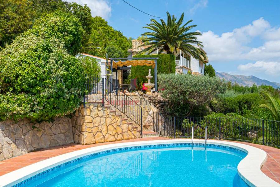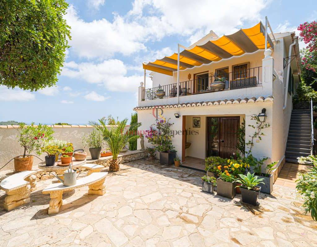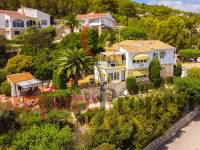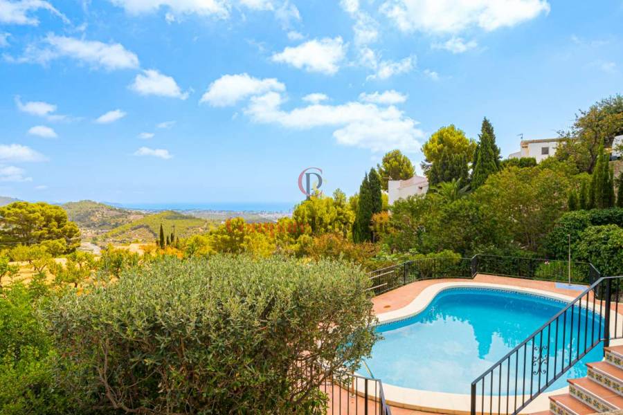 Esta hermosa villa está situada en el municipio de Benissa en la frontera de Calpe, en medio de un oasis verde de paz y sólo 6 minutos en coche del centro de Calpe y hermosas playas de arena. La villa está rodeada por el imponente paisaje montañoso d' Olta, con amplias vistas al mar Mediterráneo, incluyendo el símbolo de Calpe, la majestuosa montaña Ifach d' Peñon. La villa ofrece espectaculares vistas de Calpe, Benissa, Moraira, Teulada, entre otros, y en el fondo incluso se puede ver la montaña Montgo en Denia. La casa tiene dos unidades de vivienda, ambas con entrada propia, con varias posibilidades. Por ejemplo como actualmente se utiliza en parte (arriba) por los propietarios y en parte para alquiler abajo, (unas 48 semanas al año) o para una familia pareja mayor y niños (cada uno por separado). Como las dos plantas también están conectados internamente, por supuesto, también puede utilizar la villa como una casa unifamiliar.