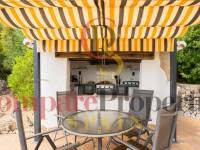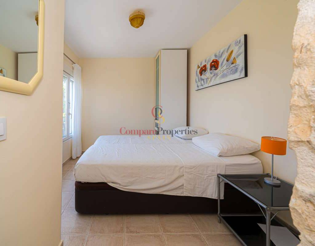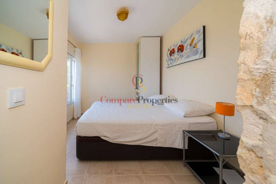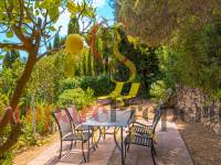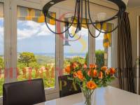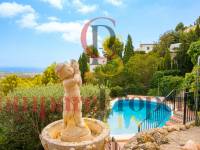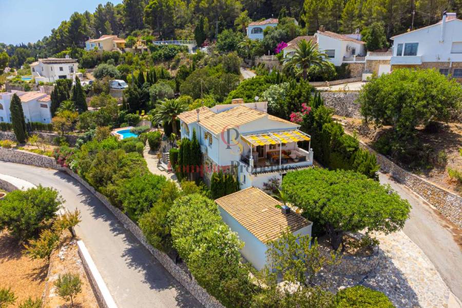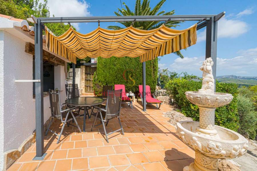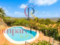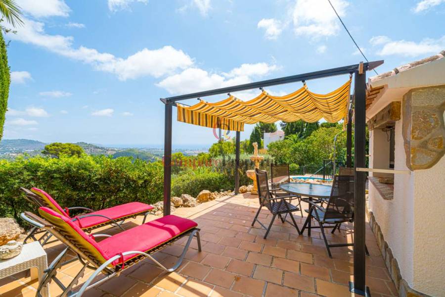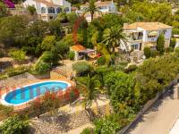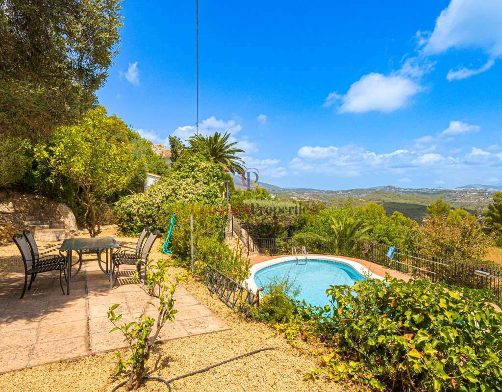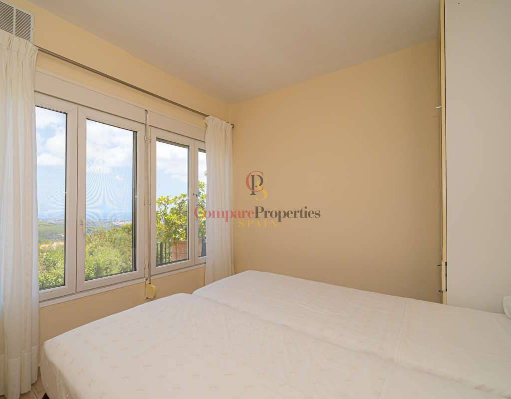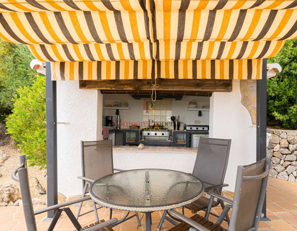 Esta hermosa villa está situada en el municipio de Benissa en la frontera de Calpe, en medio de un oasis verde de paz y sólo 6 minutos en coche del centro de Calpe y hermosas playas de arena. La villa está rodeada por el imponente paisaje montañoso d' Olta, con amplias vistas al mar Mediterráneo, incluyendo el símbolo de Calpe, la majestuosa montaña Ifach d' Peñon. La villa ofrece espectaculares vistas de Calpe, Benissa, Moraira, Teulada, entre otros, y en el fondo incluso se puede ver la montaña Montgo en Denia. La casa tiene dos unidades de vivienda, ambas con entrada propia, con varias posibilidades. Por ejemplo como actualmente se utiliza en parte (arriba) por los propietarios y en parte para alquiler abajo, (unas 48 semanas al año) o para una familia pareja mayor y niños (cada uno por separado). Como las dos plantas también están conectados internamente, por supuesto, también puede utilizar la villa como una casa unifamiliar.