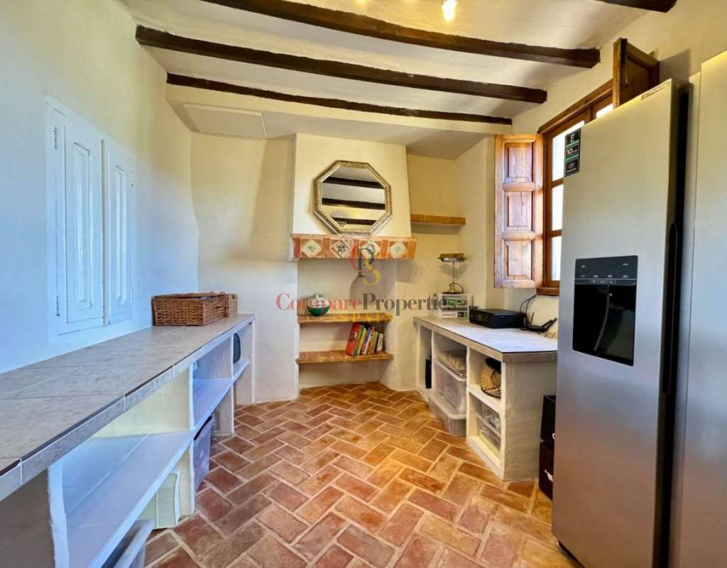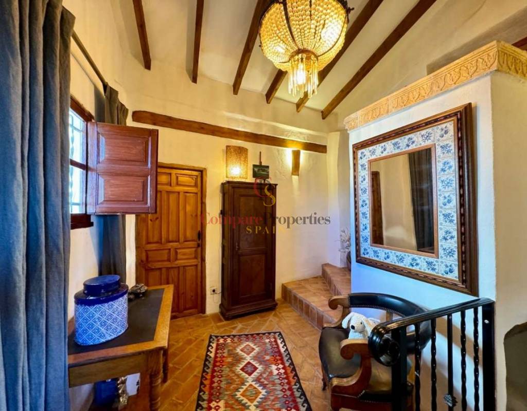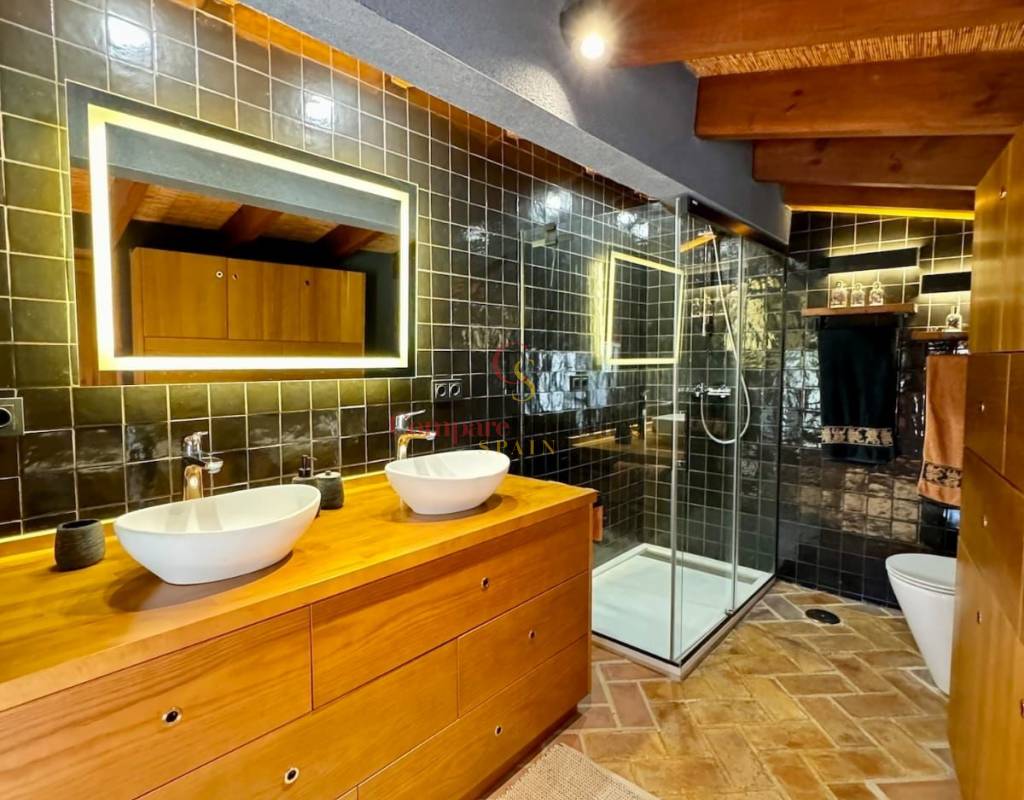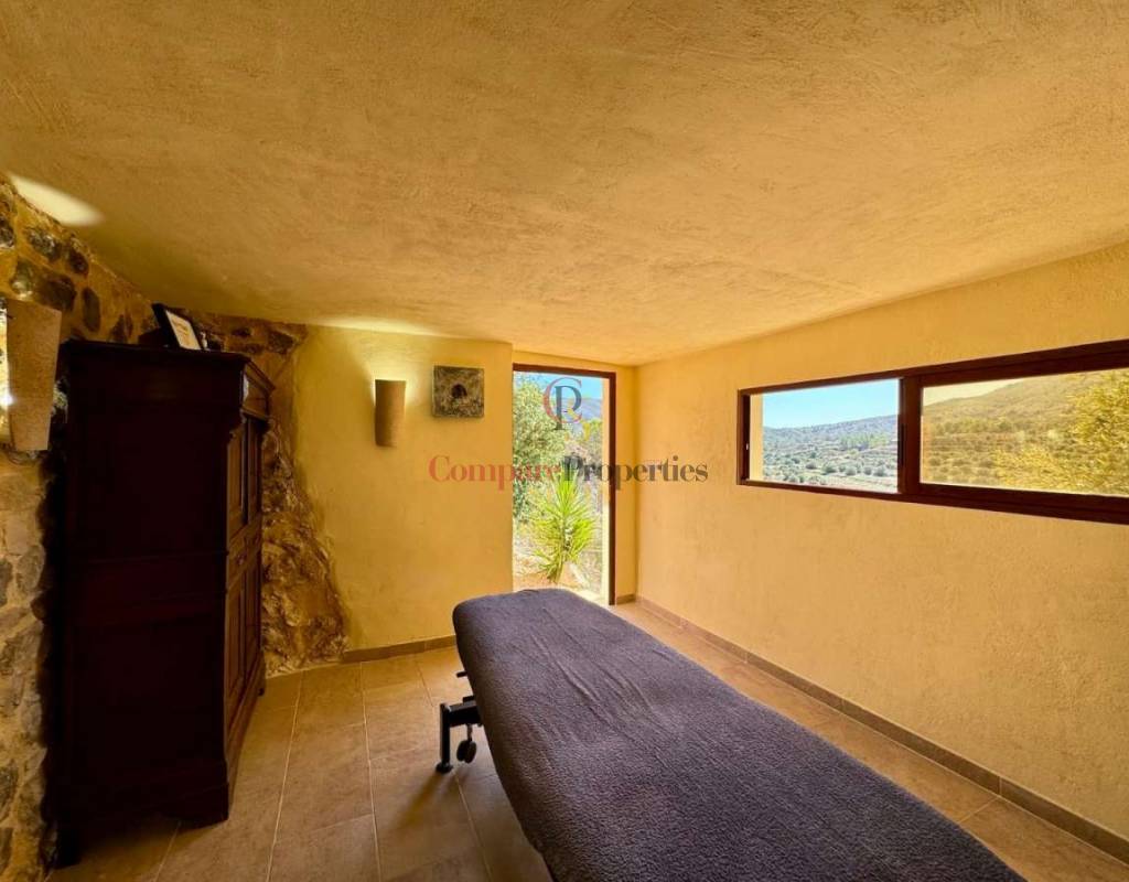 Finca de ensueño en Relleu: su oasis privado en España Escápese a la serena belleza de Relleu, donde esta impresionante finca combina el encanto tradicional con las comodidades modernas. Perfecta para quienes buscan un retiro tranquilo o un nuevo y vibrante estilo de vida bajo el sol español. Esta espaciosa propiedad de 349 m² ofrece: Dos salas de estar con acogedoras estufas de leña para una comodidad durante todo el año. Una cocina moderna con electrodomésticos de primera calidad y abundante espacio de almacenamiento. Un encantador bar de vinos con paredes de piedra arenisca, perfecto para reuniones nocturnas. Tres espaciosas habitaciones, cada una con baño en suite y vistas al campo. Un lavadero versátil que también funciona como oficina o dormitorio adicional. La parcela de 7993 m² cuenta con terrenos en terrazas con más de 50 olivos, una piscina de agua salada, múltiples terrazas para tomar el sol y un espacio separado para uso profesional o pasatiempos, con vista al olivar. Relájese, entretenga o cree: esta finca está diseñada a medida de sus sueños. Ubicada en la tranquila campiña de Relleu, pero cerca de la vibrante costa de la Costa Blanca, esta propiedad ofrece lo mejor de ambos mundos. La cosecha de aceitunas produce un delicioso aceite de cosecha propia y la belleza natural de la zona proporciona una inspiración infinita. Esta finca es más que un hogar, es un estilo de vida. Disfruta de la tranquilidad, la cultura y una vida en armonía con la naturaleza. La finca de tus sueños te espera. ¡No dejes pasar esta oportunidad! ¿Quién puede imaginar algo más que un hogar? @the village Padel Fitness Yoga Clases de español Carnicería Panadería 2 tiendas de comestibles Peluquería Salón de belleza