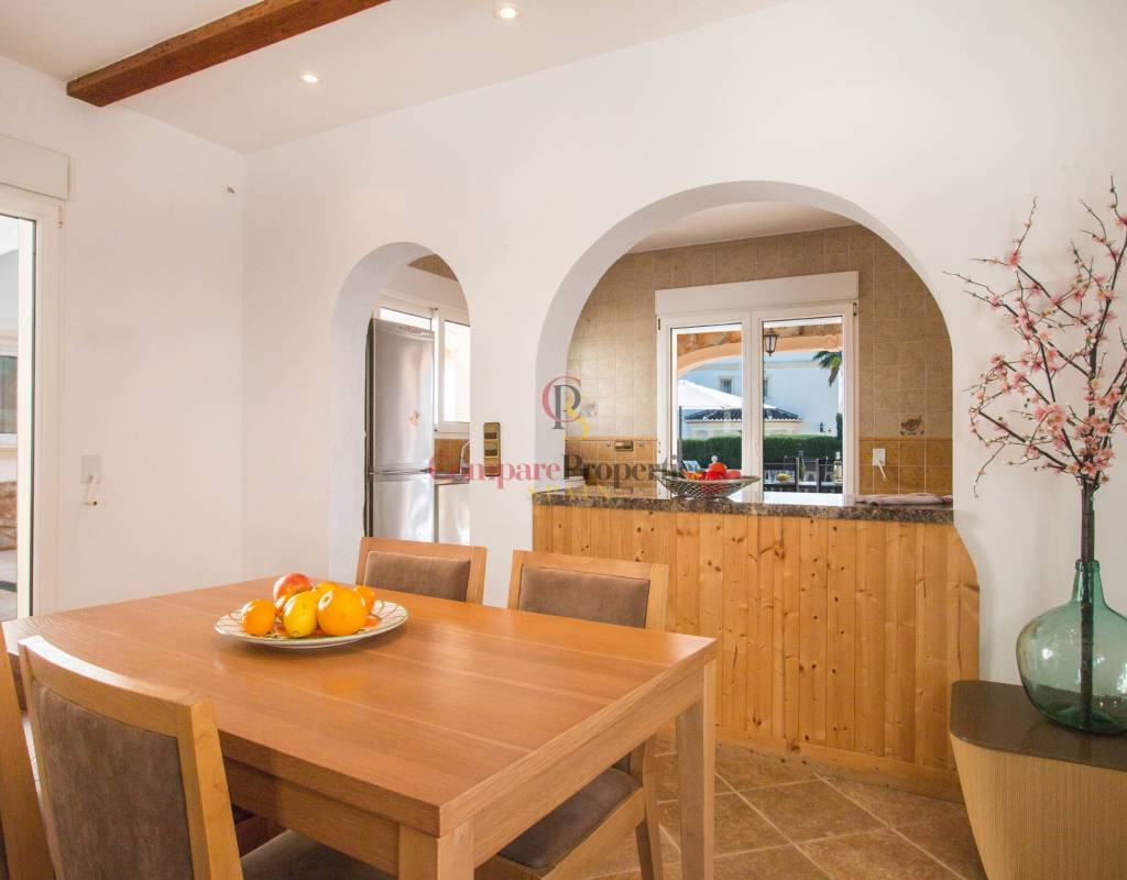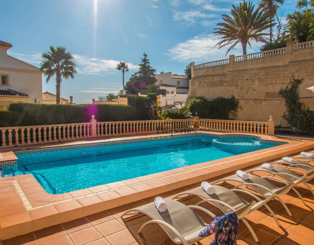 Disfrute de esta espléndida villa con piscina privada, ubicada en la hermosa Calpe, en la Costa Blanca. Diseñada para alojar a cómodamente 8 personas, esta propiedad de cuatro dormitorios y tres baños ofrece un lujo excepcional, todo en una única planta. El confort está garantizado con aire acondicionado disponible tanto en el espacioso salón como en todos los dormitorios.