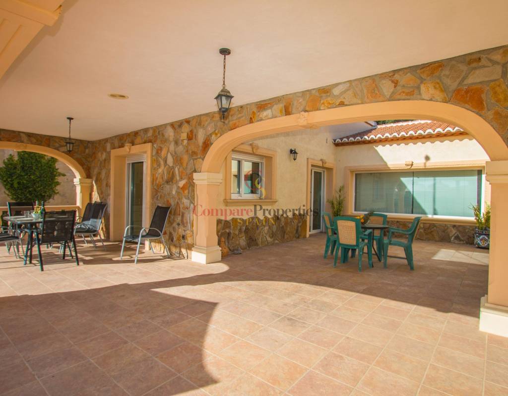 El exterior de la villa destaca por una agradable zona con una piscina de 10x5 metros, provista de escaleras romanas y una refrescante ducha al aire libre. También encontrará un cuarto de baño exterior y una barbacoa de obra cubierta, donde se encuentra la lavadora. El estacionamiento para hasta 3 vehículos en la misma parcela añade comodidad a su estancia.