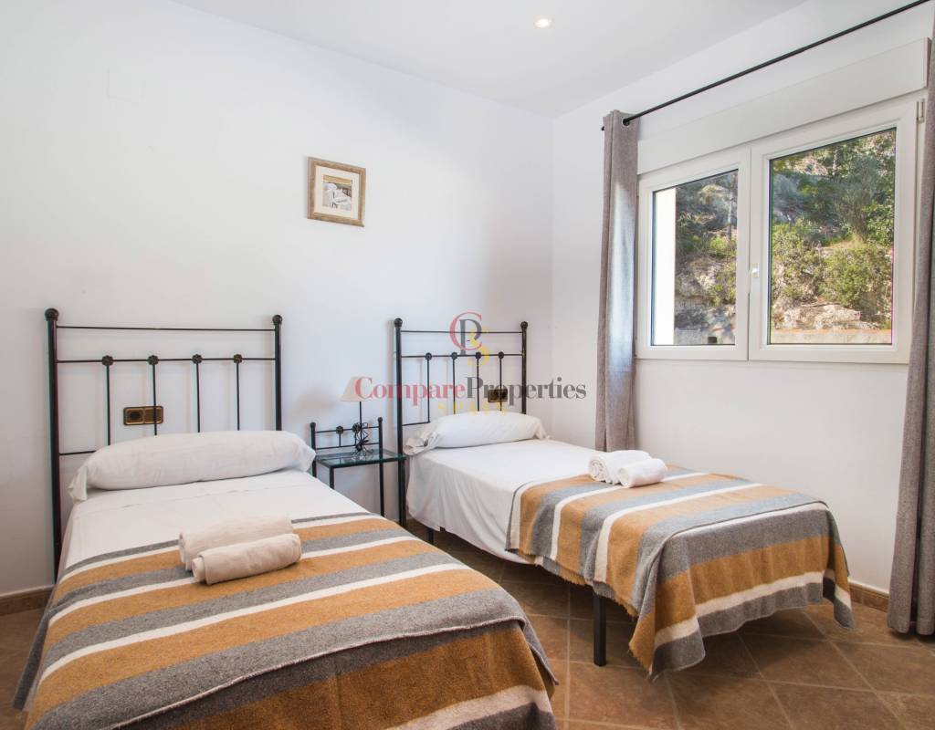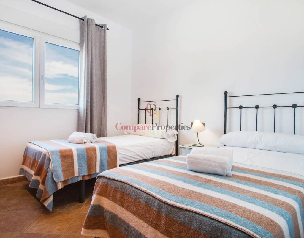 Al ingresar a esta magnífica villa, se encontrará con un amplio salón-comedor y acceso a una terraza cubierta junto a la piscina. La cocina abierta, totalmente equipada con cocina de gas y lavavajillas, también ofrece acceso a la terraza cubierta. Dos dormitorios están equipados con dos camas individuales cada uno, mientras que un amplio dormitorio con cama de matrimonio cuenta con un cuarto de baño en suite con ducha y acceso directo a la terraza cubierta. Además, hay otro dormitorio con una cama de matrimonio y dos baños independientes con platos de ducha.
