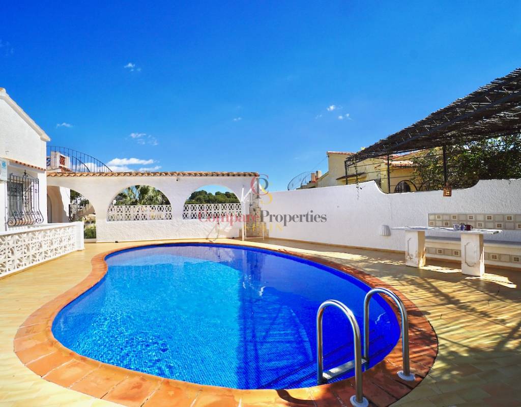 La propiedad se distribuye en dos niveles, cada uno con su propia cocina, por lo que es ideal para familias, invitados, o incluso potencial de alquiler. Sin embargo, también se podría convertir fácilmente en una casa espaciosa si se desea. En el interior, la villa cuenta con espacios luminosos con ventanas de doble acristalamiento, aire acondicionado y una naya acristalada, un lugar perfecto para relajarse y disfrutar de las vistas durante todo el año.