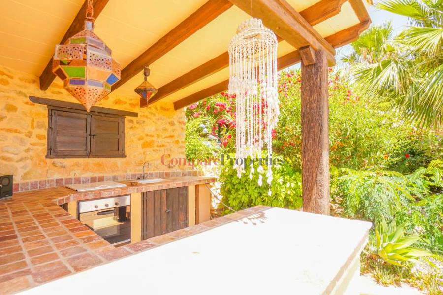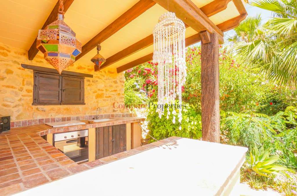 En el exterior se encuentra la piscina y un jardín mediterráneo adyacente de cítricos y árboles frutales tropicales. Ambos están aislados, lo que le da la privacidad que necesita para relajarse. Después de un refrescante baño, las tumbonas de la terraza de la piscina son ideales para tomar el sol o hacer una siesta al aire libre. El pabellón de paja tiene estilo y te invita a disfrutar de una refrescante sangría. Por supuesto, el campo ofrece la posibilidad de una acogedora barbacoa en la amplia zona de barbacoa. También puedes elegir disfrutar de un asiento en primera fila para ver la pintoresca puesta de sol.