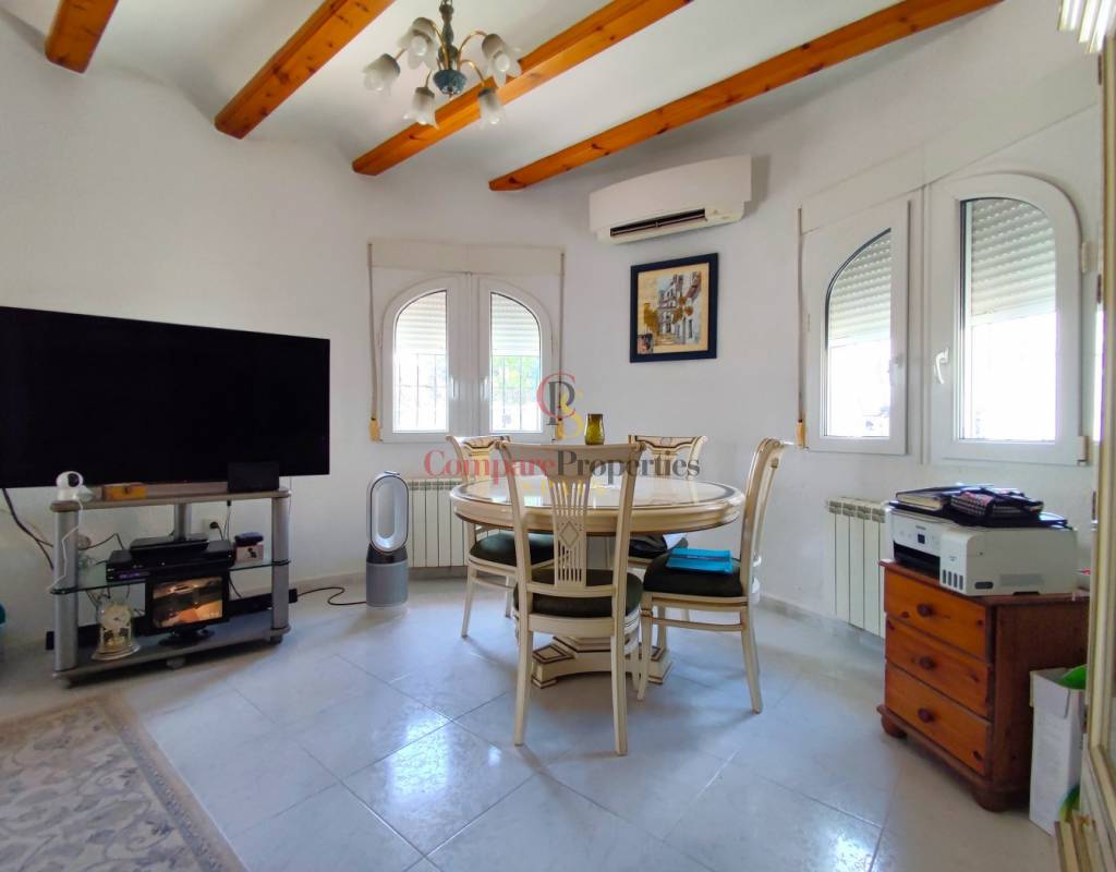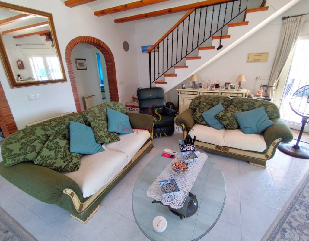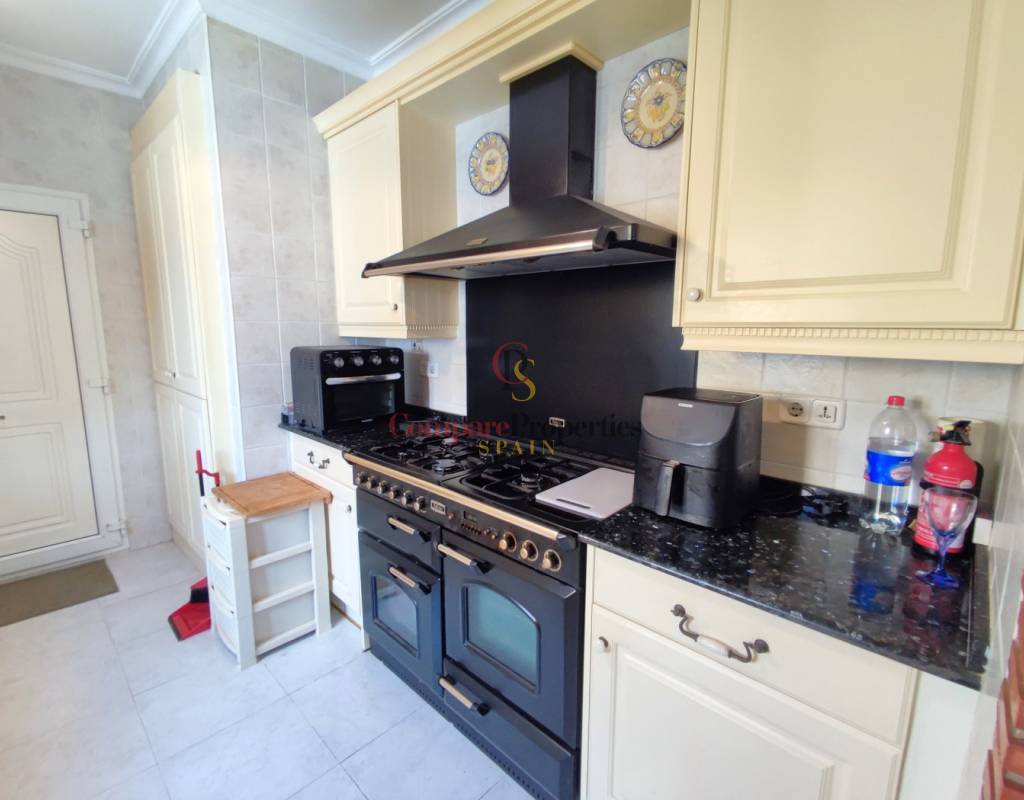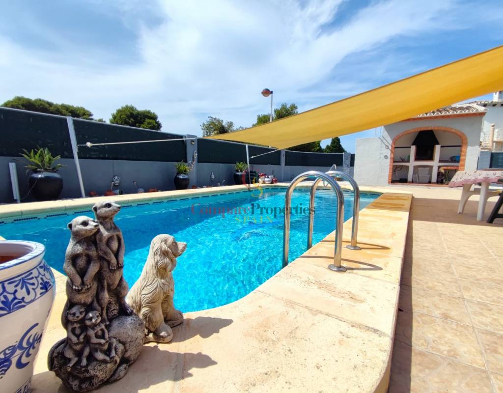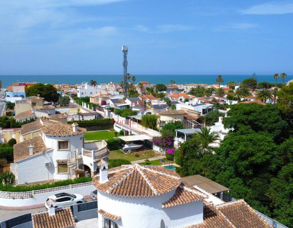 Este encantador chalet de estilo mediterráneo se encuentra en una apacible zona residencial de Els Poblets, y a tan solo 200m al mar. Ofrece el equilibrio ideal entre comodidad, diseño y calidad de vida. Con 175 m² construidos sobre una generosa parcela de 479 m², la vivienda dispone de tres amplios dormitorios, dos baños y una distribución diáfana con mucha luz natural, creando espacios cálidos y acogedores. Pensado para ofrecer confort durante todo el año, cuenta con aire acondicionado frío/calor, calefacción por gas centralizado, chimenea y una cocina independiente perfecta para el día a día familiar. En el exterior, destaca una magnífica zona ajardinada con piscina privada, cocina de verano, barbacoa y terrazas tanto abiertas como cubiertas, ideales para disfrutar del clima mediterráneo y espectaculares puestas de sol gracias a su orientación suroeste. La vivienda está equipada con puerta de seguridad, doble acristalamiento y buena conectividad a internet, asegurando tranquilidad y conexión en todo momento. Situada cerca de la playa, esta propiedad permite disfrutar de un entorno sereno sin renunciar a las actividades culturales y recreativas que ofrece Els Poblets y Denia. Una oportunidad excelente para quienes buscan una preciosa casa en una excelente ubicación al lado del mar, en la Costa Blanca. Llámenos ahora para organizar una visita!