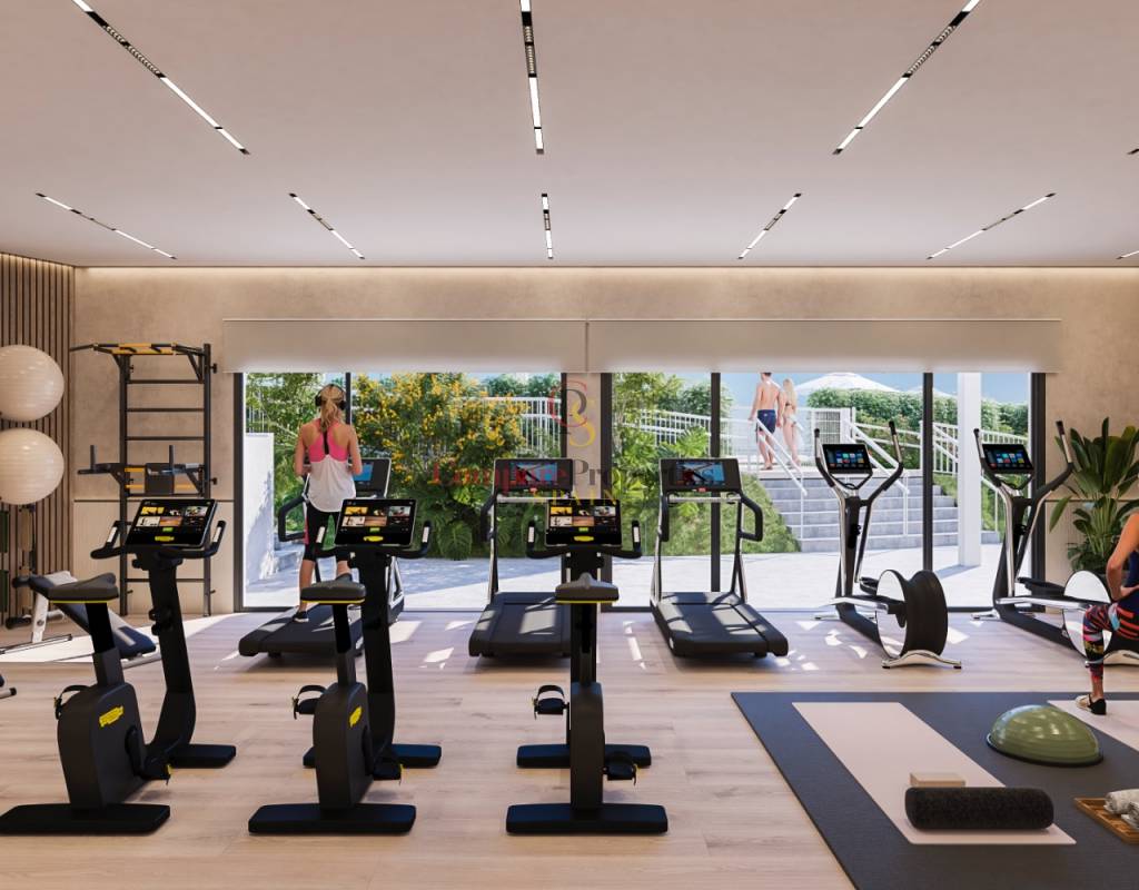 El residencial ofrece varias piscinas comunitarias (piscina para adultos, piscina infantil, carril de nado climatizado y jacuzzi), gimnasio interior, circuito de calistenia al aire libre, mini-golf, salón social gourmet, área de barbacoa y zona de coworking. En la azotea encontrarás un rooftop con piscina infinity con vistas al mar.