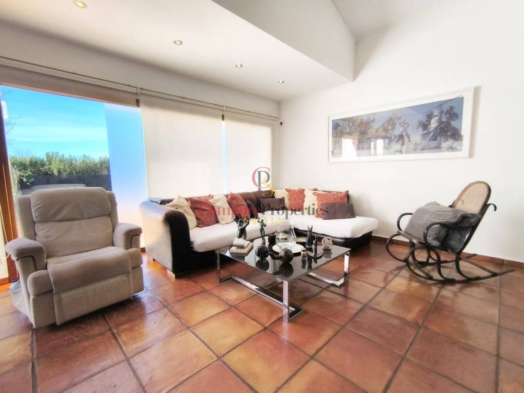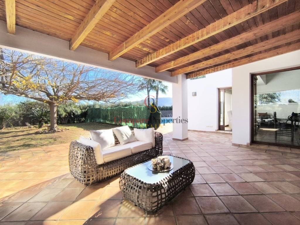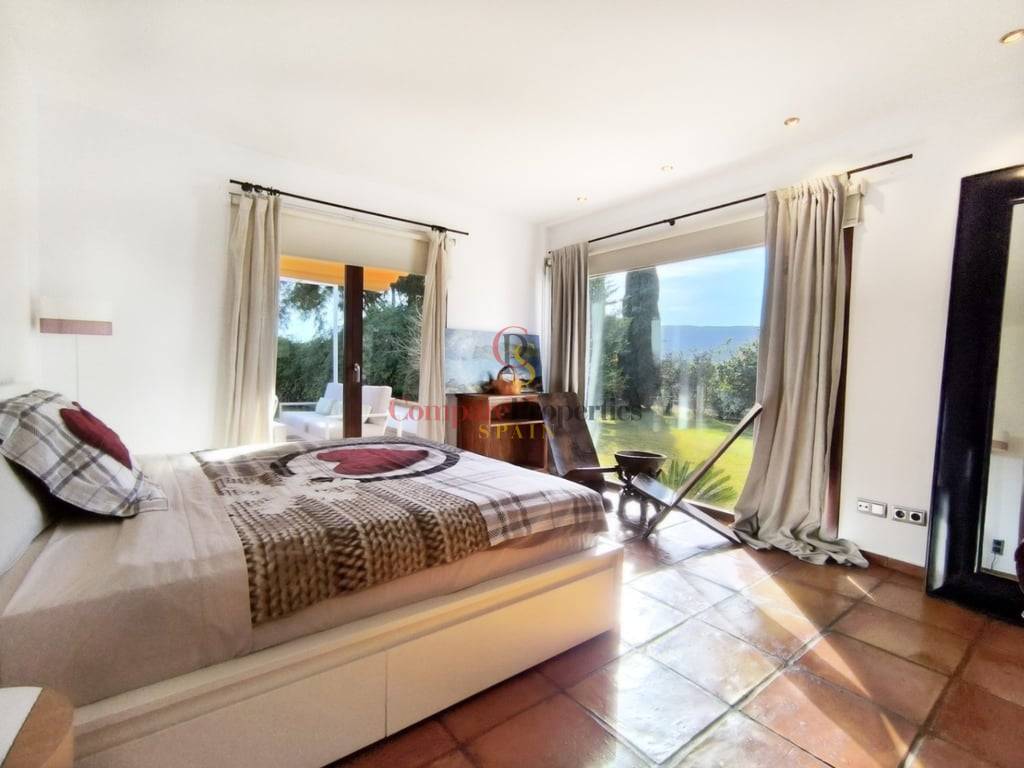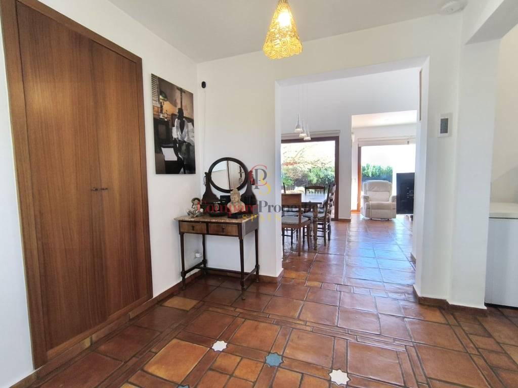 En el exterior, la villa cuenta con una piscina de gran tamaño, ideal para disfrutar del clima mediterráneo. Su orientación privilegiada garantiza luz natural durante todo el día y todo el año, creando un ambiente cálido y acogedor en cada estación.