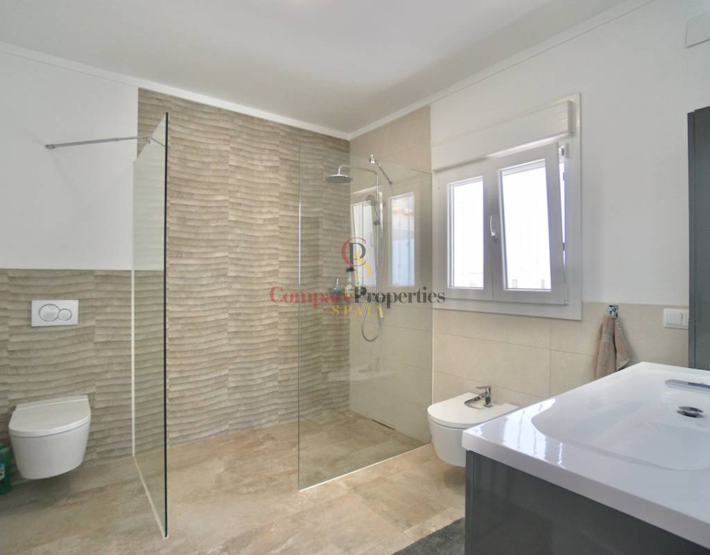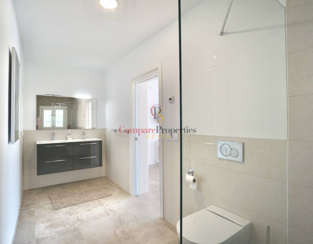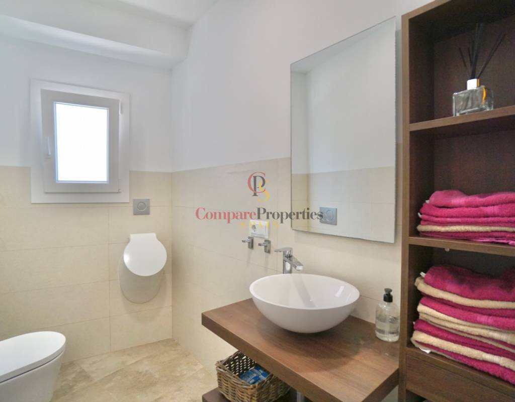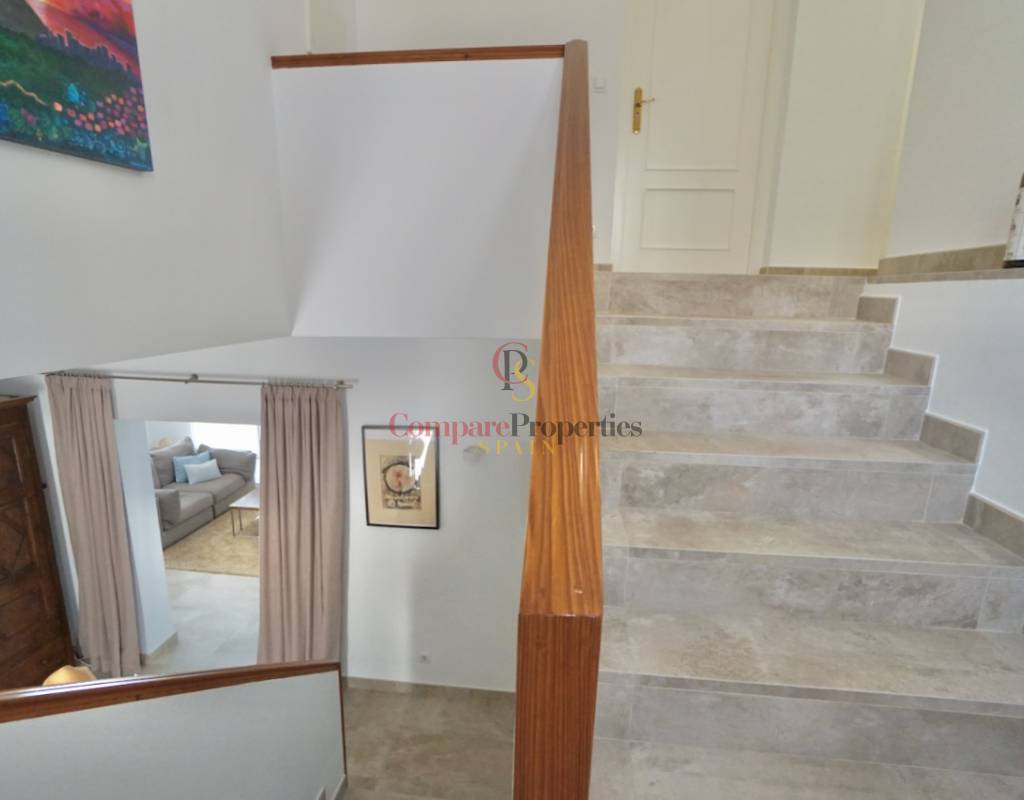En la planta superior se encuentra una amplia suite principal con baño en suite y una maravillosa terraza con impresionantes vistas al mar, perfecta para disfrutar tanto de los amaneceres como de los atardeceres. Además, hay dos dormitorios más (uno utilizado actualmente como despacho) y un segundo baño familiar.