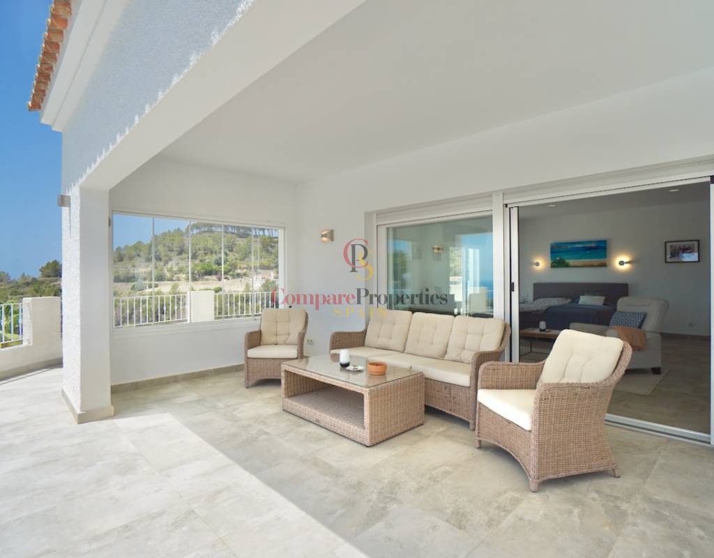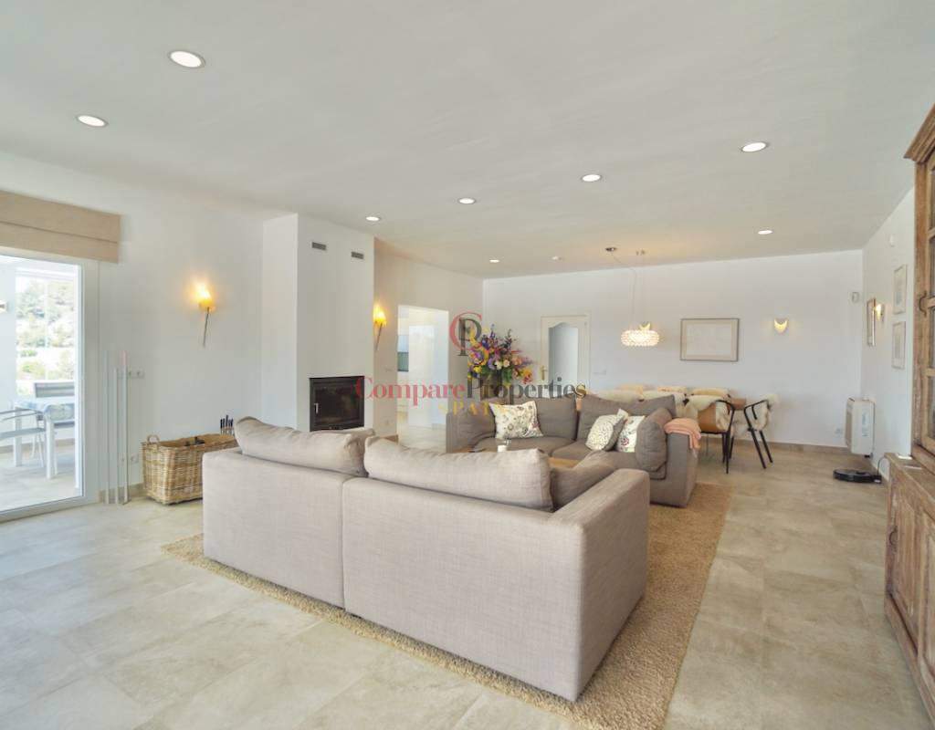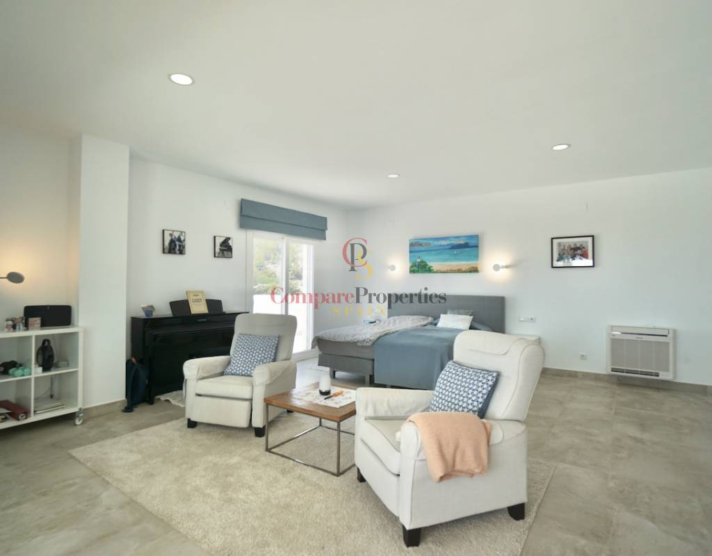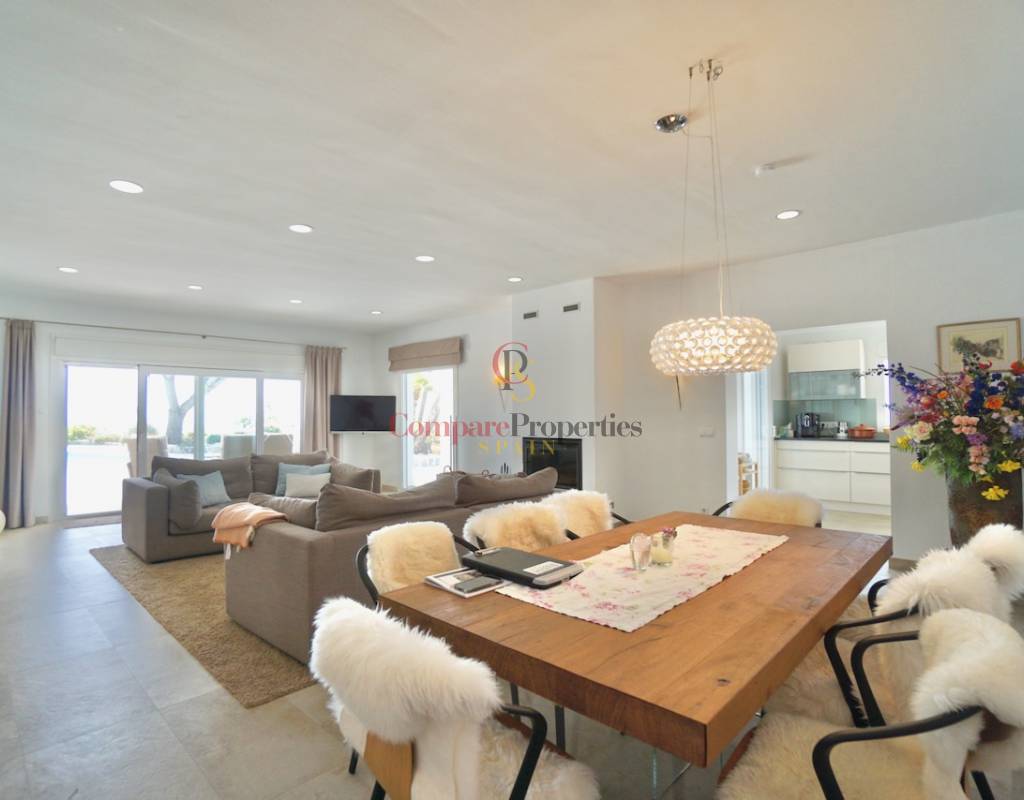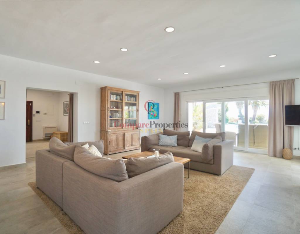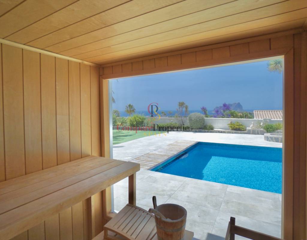 Vistas panorámicas al mar con el Peñón de Ifach de fondoAmplia parcela llana y totalmente accesibleEspaciosos salones y comedor con chimenea y aseo de invitadosCocina totalmente equipada con naya acristaladaSeis dormitorios y cuatro bañosPiscina de 12 x 5 metros con amplia terraza y aseo de invitadosSauna con vistas abiertas al mar y baño con duchaAire acondicionado central (frío/calor) y sistema de alarmaAmplio garaje con zona de lavandería