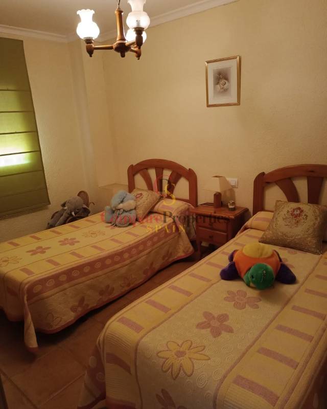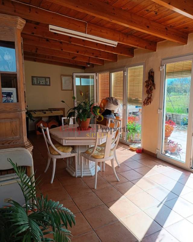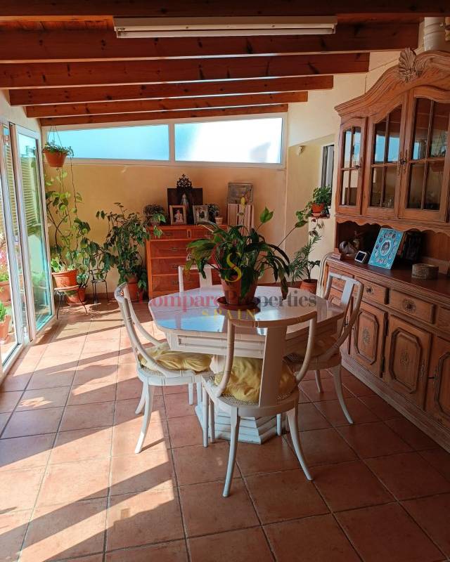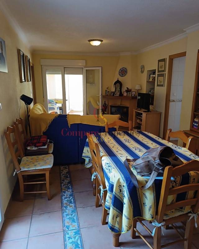 Casa semiadosada de dos plantas, con 4 dormitorios, 2 baños, y con parcela de 2.400 m2.