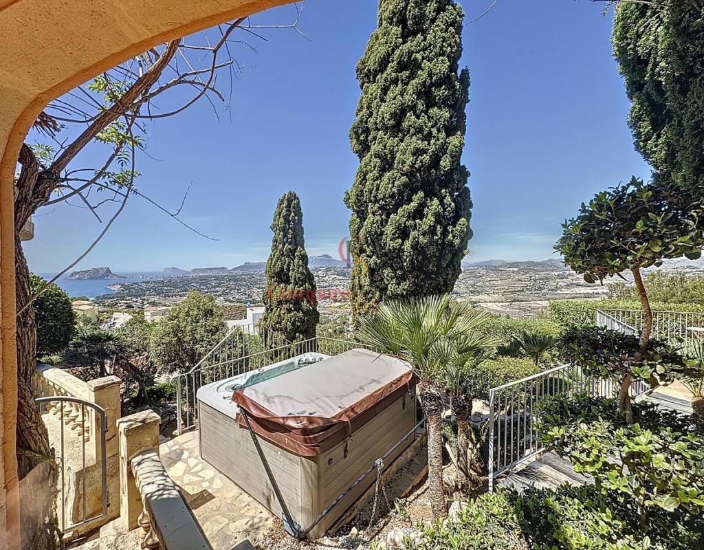 Bienvenidos a la urbanización Cumbre del Sol, donde les presentamos una joya inmobiliaria ubicada en la prestigiosa zona residencial Kalmias, entre Jávea y Moraira, en el encantador municipio de Benitachell. Esta espaciosa villa ofrece una experiencia de vida inigualable con vistas panorámicas al mar Mediterráneo, destacando el imponente Peñón de Ifach en el horizonte.