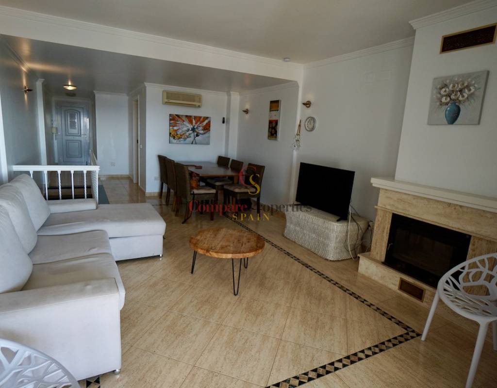 Dúplex en primera línea con vistas al mar3 dormitorios, 2 baños Cocina independiente y lavaderoAmplio salón con terraza soleadaPiscina y jardines comunitariosTerraza privada con acceso al jardín2 plazas de garaje y trasteroAire acondicionado y doble acristalamientoA poca distancia del centro de Moraira