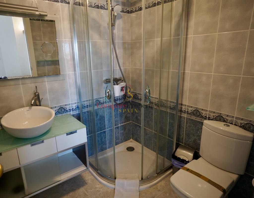 En la planta baja encontramos tres cómodos dormitorios, incluido el principal con acceso directo a una terraza privada y a los jardines comunitarios, además de dos baños modernos con ducha y amplios armarios empotrados.