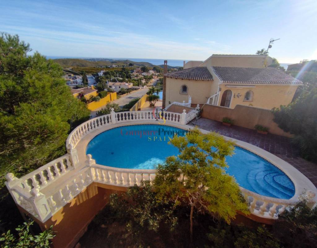 Descubre esta magnífica villa con impresionantes vistas al mar, ubicada en la exclusiva zona Residencial Encinas, dentro de la urbanización Cumbre del Sol, entre Jávea y Moraira, en el encantador municipio de Benitachell.