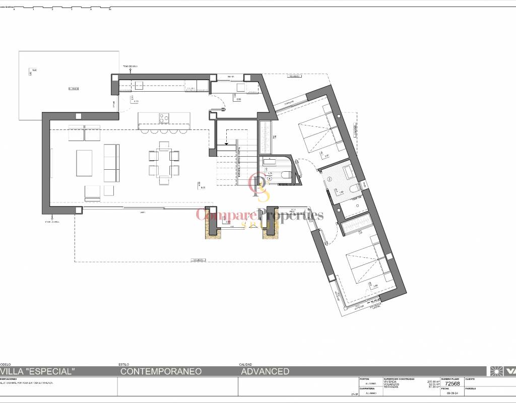 Con una superficie total construida de 381 m², esta propiedad se distribuye en 206 m² de vivienda, 132 m² de terrazas y 43 m² de garaje con sala de máquinas y trastero, todo ello sobre una parcela de 870 m² con una inmejorable orientación sur, que garantiza sol y luz durante todo el día.
