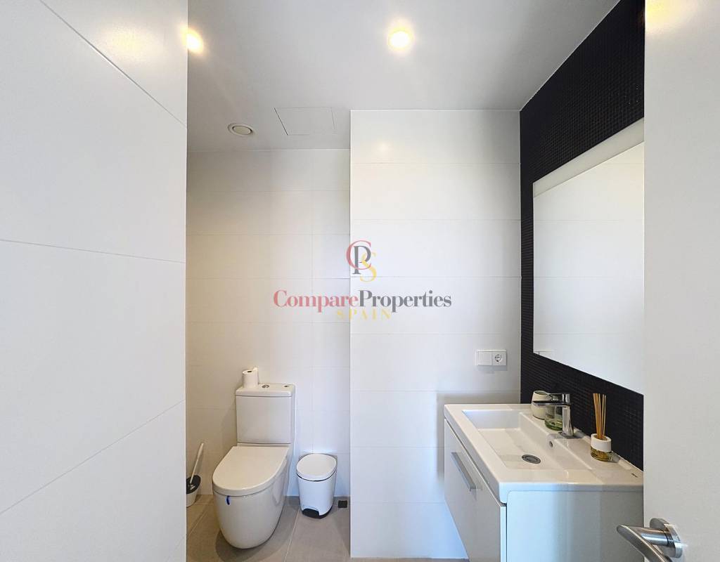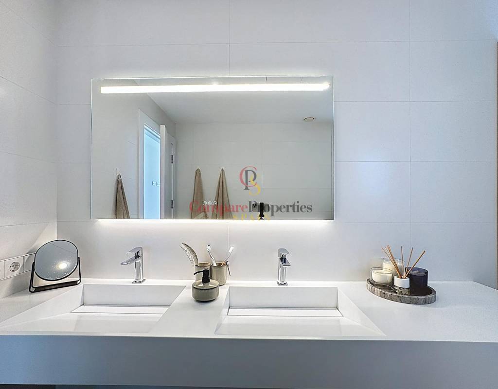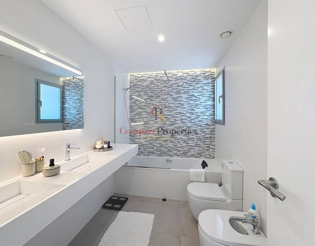 Planta altaAmplio salón comedor con acceso directo a la terraza y la piscina.Cocina americana totalmente equipada, con lavadero independiente.Dormitorio principal con vestidor, baño en suite y salida a la terraza.Dos dormitorios dobles con armarios empotrados.Un cuarto de baño completo compartido.Cuarto técnico.Terraza principal con piscina privada y zonas para el descanso al aire libre.Planta bajaApartamento de invitados con salón comedor, cocina abierta, dormitorio doble, baño completo y acceso a una terraza privada.Equipamiento y confortLa villa está equipada con las mejores prestaciones: