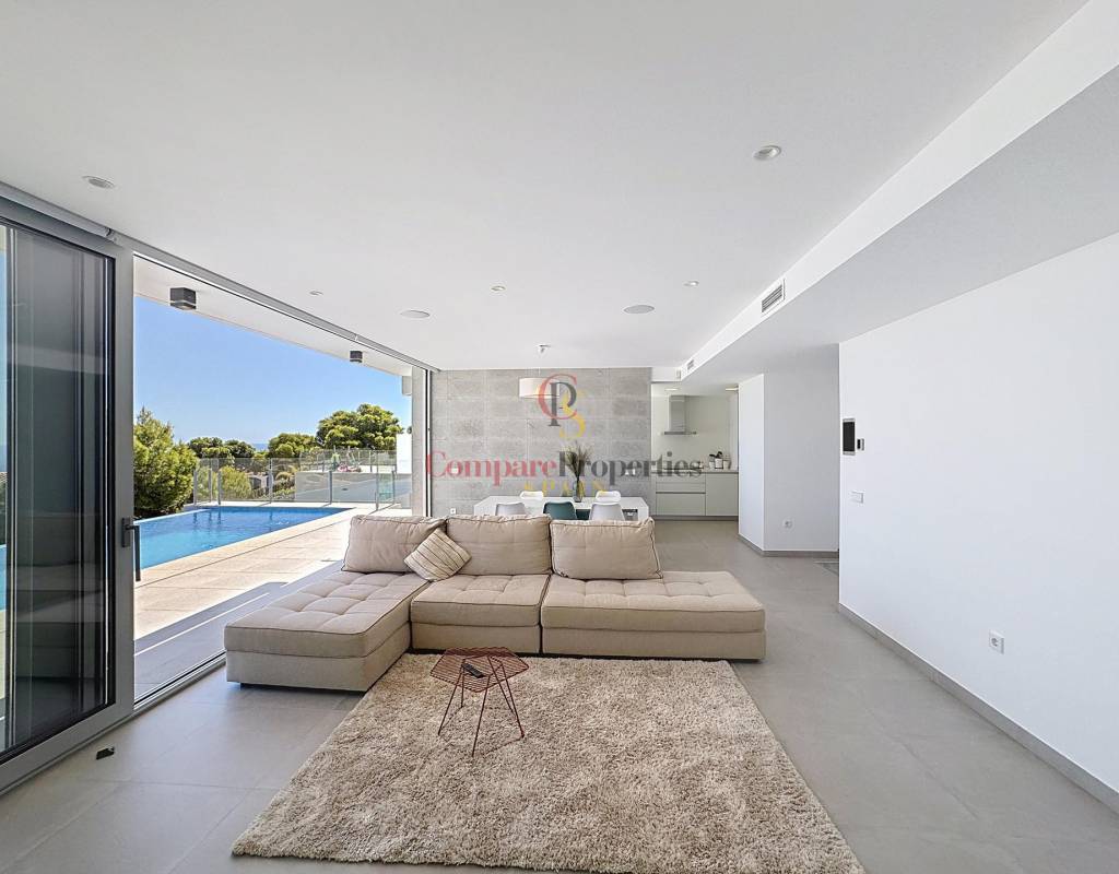 Villa moderna con piscina privada y vistas al mar en Lirios – Cumbre del SolUna villa contemporánea en un enclave privilegiadoPresentamos esta exclusiva villa de reciente construcción situada en la prestigiosa urbanización Cumbre del Sol, dentro de la zona residencial Lirios, en el municipio de Benitachell, entre las encantadoras localidades de Jávea y Moraira.