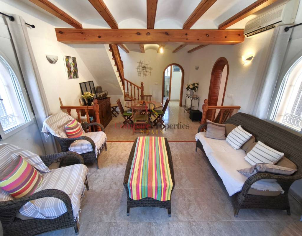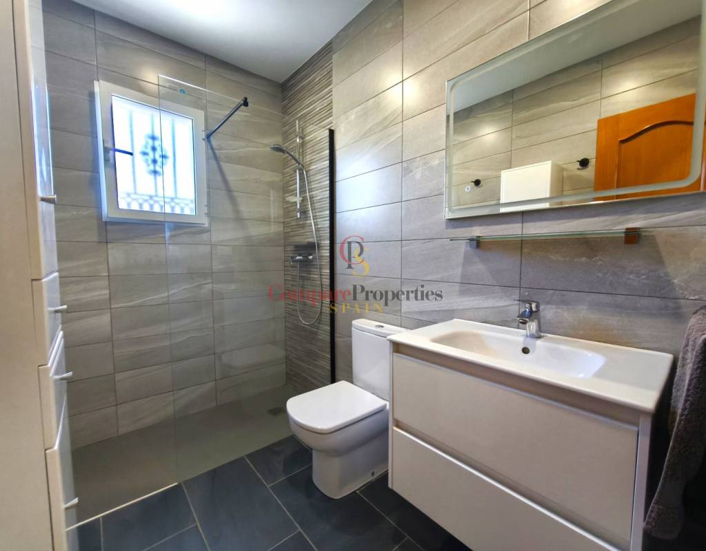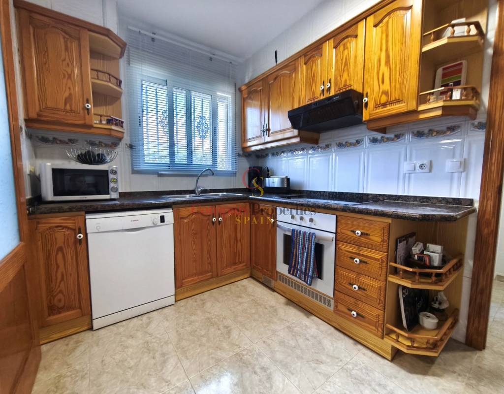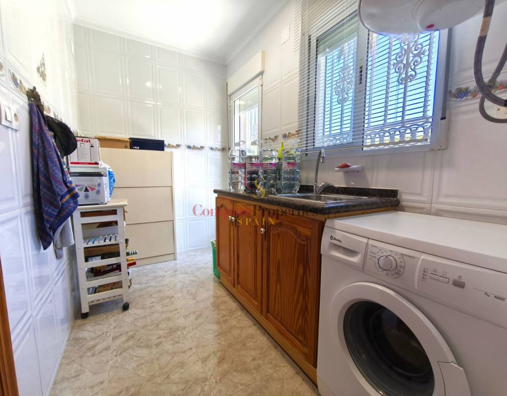 Situado en una tranquila zona residencial de Els Poblets, este bonito chalet ofrece el equilibrio perfecto entre comodidad, privacidad y proximidad al mar. A tan solo 500 metros de la playa, la propiedad se ubica sobre una parcela de 400 m² y cuenta con una superficie construida de 180 m² distribuidos en dos plantas. En el exterior, podrás disfrutar de una acogedora piscina privada con ducha exterior, un bonito jardín con sistema de riego automático, una terraza cubierta ideal para relajarse en cualquier época del año, así como garaje cerrado y carport cubierto para mayor comodidad. La planta baja tiene un amplio y luminoso salón-comedor con chimenea, cocina independiente con acceso al lavadero, dos dormitorios, y dos baños con ducha. A la planta superior se accede mediante escaleras interiores y ofrece un espacio multifuncional que puede utilizarse como sala de estar, dormitorio adicional u oficina, un dormitorio con balcón, un aseo y una preciosa terraza con vistas despejadas a la montaña. Entre sus comodidades adicionales destacan: preinstalación de calefacción por gas o bomba de calor, aire acondicionado frío/calor, doble acristalamiento, mosquiteras, y orientación sur, lo que proporciona una excelente iluminación natural durante todo el día. Además, se encuentra conectada al alcantarillado general. La vivienda se encuentra en una zona muy privada, ideal tanto como residencia habitual como para vacaciones. ¡Una oportunidad única para vivir cerca del mar en un entorno tranquilo y con todas las comodidades! Llámenos ahora para realizar una visita!