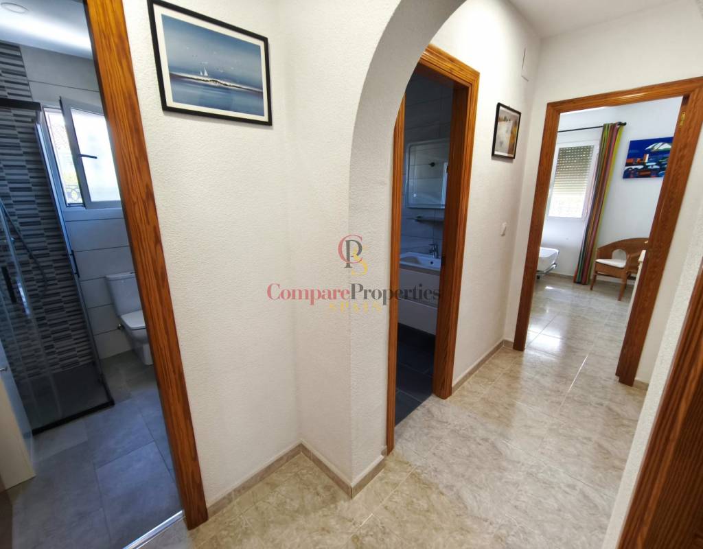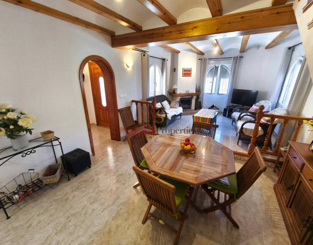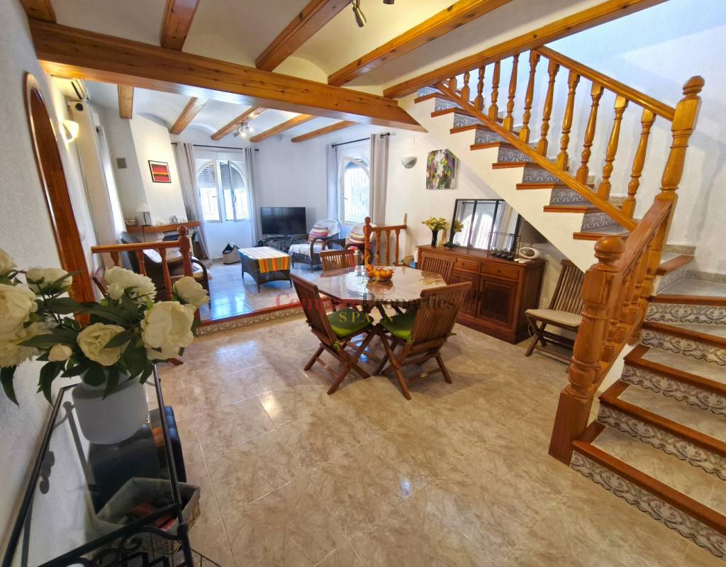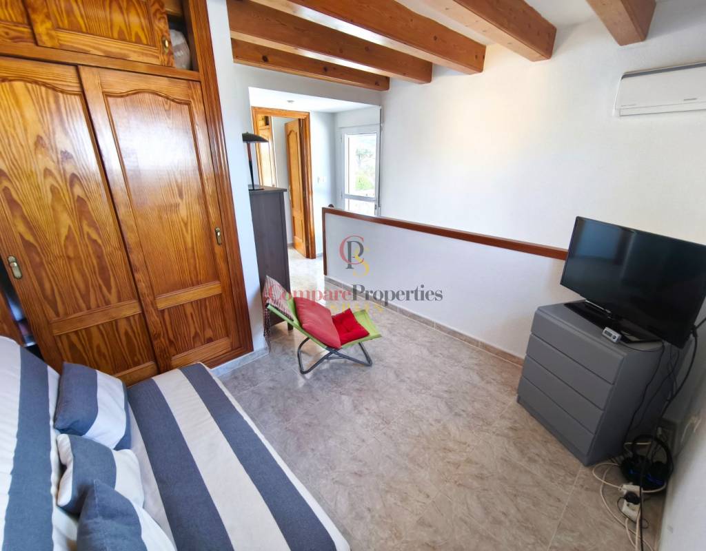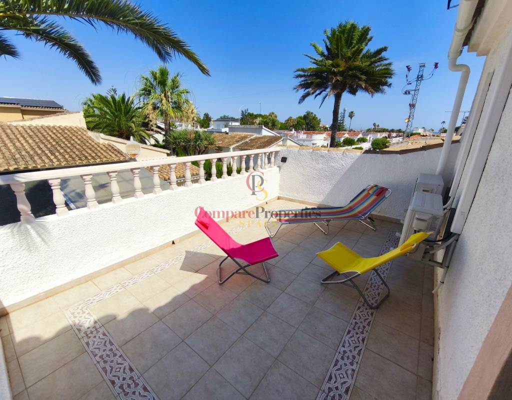 Situado en una tranquila zona residencial de Els Poblets, este bonito chalet ofrece el equilibrio perfecto entre comodidad, privacidad y proximidad al mar. A tan solo 500 metros de la playa, la propiedad se ubica sobre una parcela de 400 m² y cuenta con una superficie construida de 180 m² distribuidos en dos plantas. En el exterior, podrás disfrutar de una acogedora piscina privada con ducha exterior, un bonito jardín con sistema de riego automático, una terraza cubierta ideal para relajarse en cualquier época del año, así como garaje cerrado y carport cubierto para mayor comodidad. La planta baja tiene un amplio y luminoso salón-comedor con chimenea, cocina independiente con acceso al lavadero, dos dormitorios, y dos baños con ducha. A la planta superior se accede mediante escaleras interiores y ofrece un espacio multifuncional que puede utilizarse como sala de estar, dormitorio adicional u oficina, un dormitorio con balcón, un aseo y una preciosa terraza con vistas despejadas a la montaña. Entre sus comodidades adicionales destacan: preinstalación de calefacción por gas o bomba de calor, aire acondicionado frío/calor, doble acristalamiento, mosquiteras, y orientación sur, lo que proporciona una excelente iluminación natural durante todo el día. Además, se encuentra conectada al alcantarillado general. La vivienda se encuentra en una zona muy privada, ideal tanto como residencia habitual como para vacaciones. ¡Una oportunidad única para vivir cerca del mar en un entorno tranquilo y con todas las comodidades! Llámenos ahora para realizar una visita!
