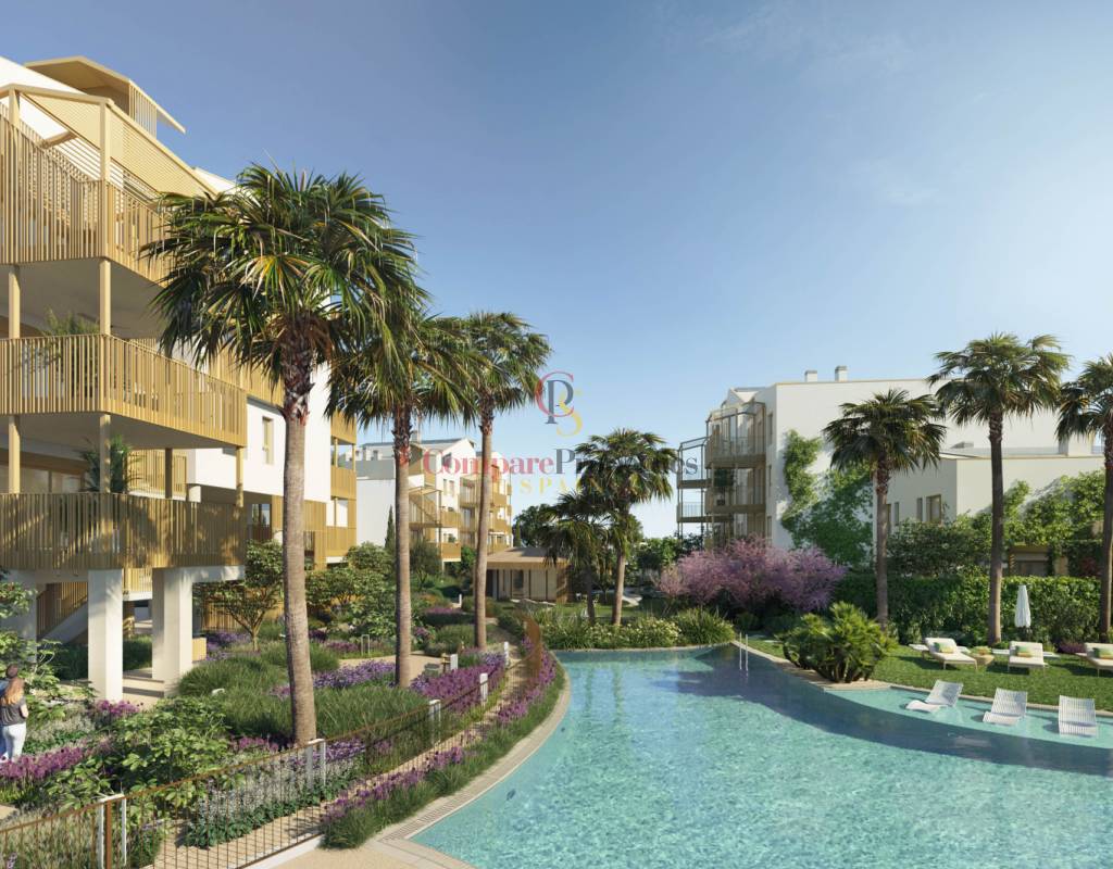 Instalación de paneles fotovoltaicos para autoconsumo colectivo. Los residentes de Talasa Village tendrán acceso al «Puerto de Talasa», un acceso al mar situado en el paseo marítimo de La Almadraba, en Denia.