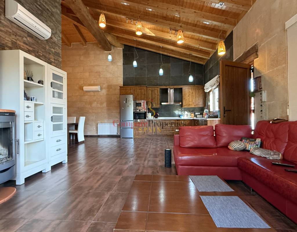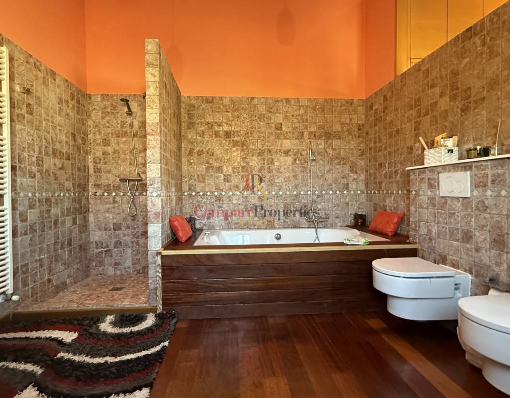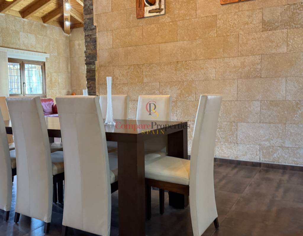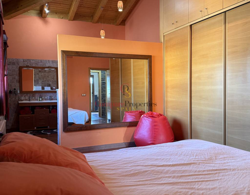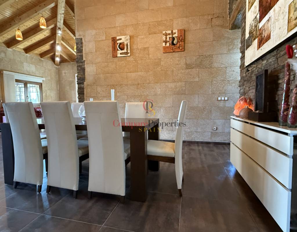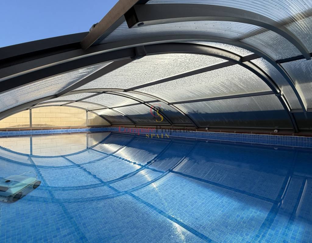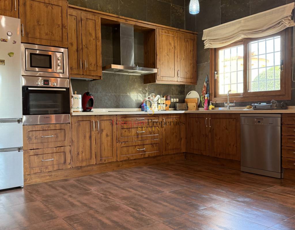 La vivienda cuenta con bodega subterránea, trastero de 20 m², aire acondicionado en todas las estancias, chimenea de leña en el salón, y una espectacular piscina salina climatizada de 8×4 m, cubierta, con electrólisis y control automático de pH. Los interiores destacan por techos y puertas de madera maciza y ventanas de PVC con doble acristalamiento, aportando calidez y aislamiento. Los techos son de gran altura lo que otorga una sensación de amplitud extraordinaria.