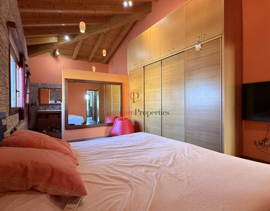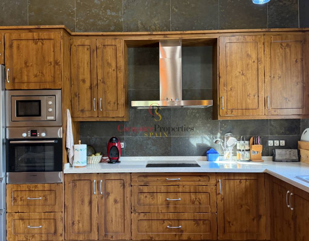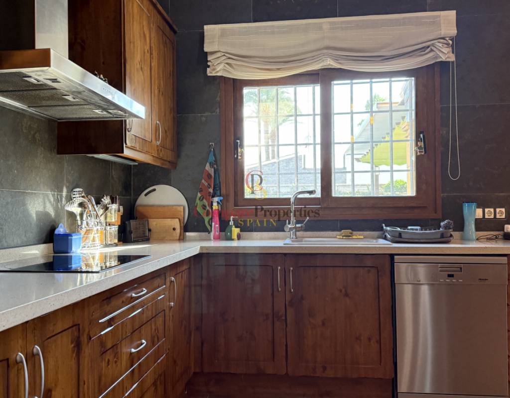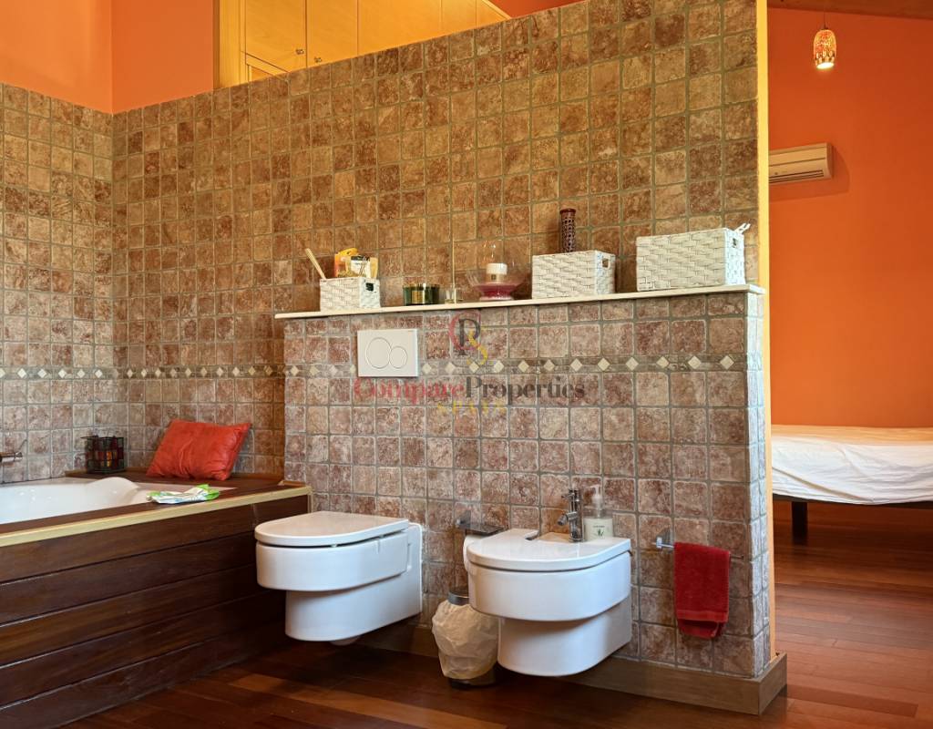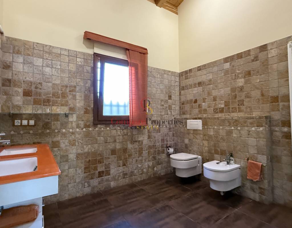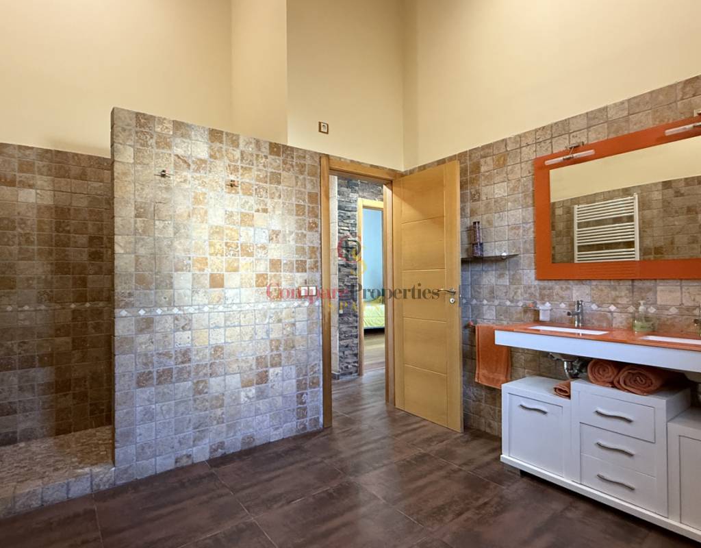 La vivienda cuenta con bodega subterránea, trastero de 20 m², aire acondicionado en todas las estancias, chimenea de leña en el salón, y una espectacular piscina salina climatizada de 8×4 m, cubierta, con electrólisis y control automático de pH. Los interiores destacan por techos y puertas de madera maciza y ventanas de PVC con doble acristalamiento, aportando calidez y aislamiento. Los techos son de gran altura lo que otorga una sensación de amplitud extraordinaria.