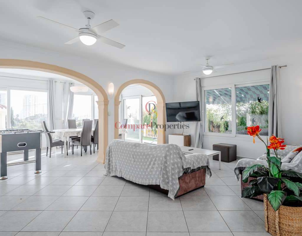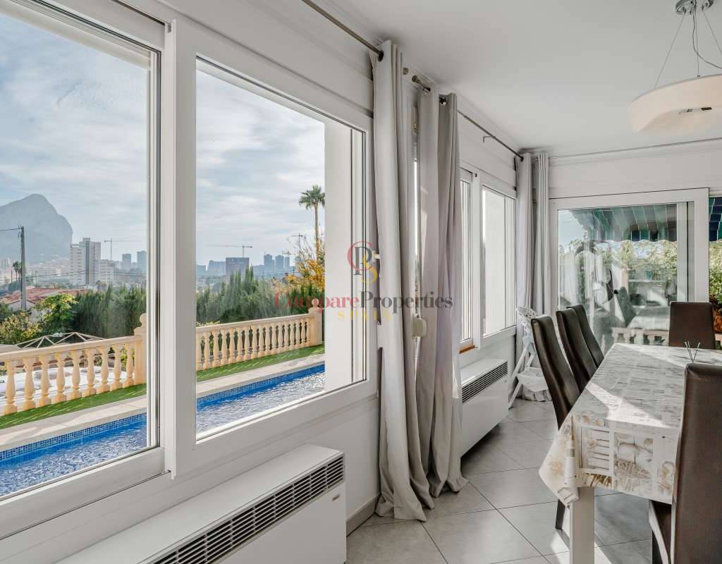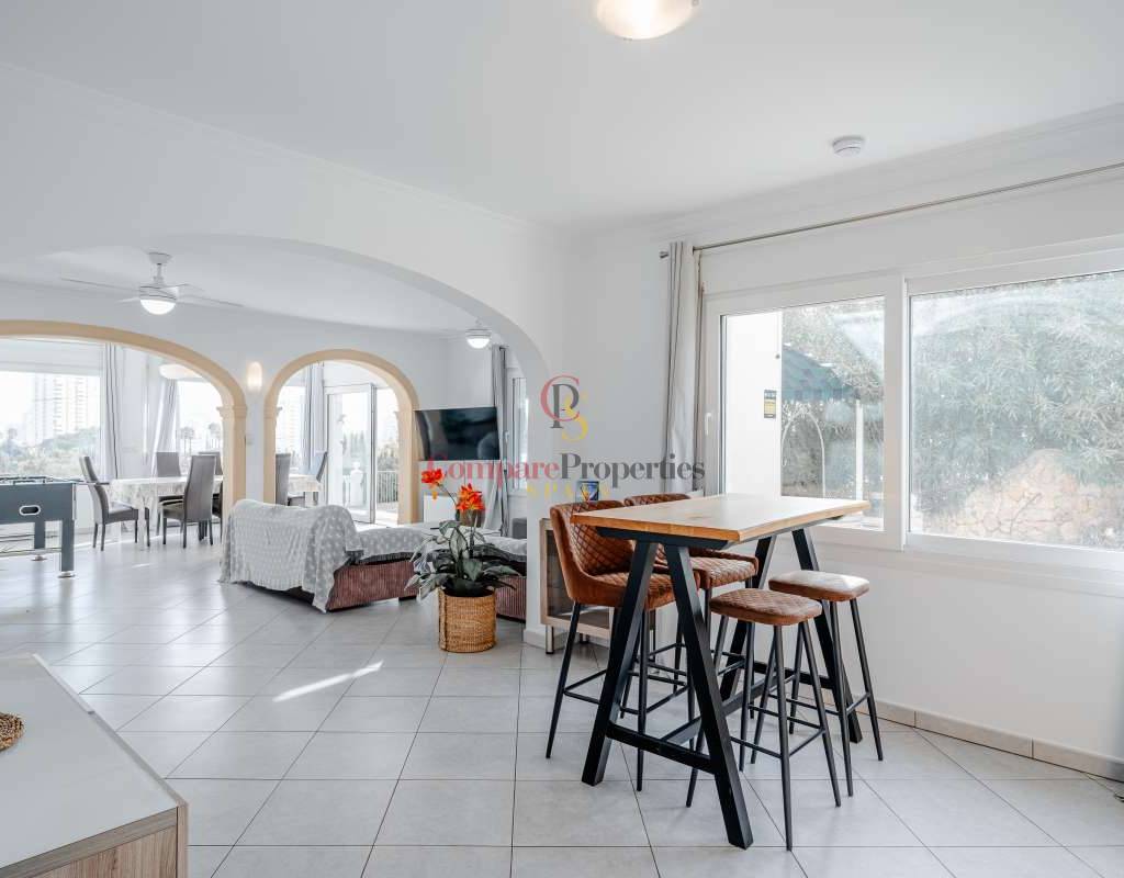 Villa de calidad en Calpe con vistas parciales al mar y alta rentabilidadSituada en Calpe, uno de los destinos más atractivos de la Costa Blanca, esta villa destaca por su excelente ubicación, calidad constructiva y potencial tanto residencial como de inversión. Calpe es conocido por su microclima privilegiado, con más de 300 días de sol al año y temperaturas suaves durante todo el año, lo que lo convierte en un lugar ideal para vivir o disfrutar de estancias vacacionales en cualquier estación.La vivienda ofrece vistas parciales al mar y se encuentra en una zona tranquila, pero a la vez a poca distancia a pie de la playa, restaurantes, supermercados y transporte público. Esta combinación de calma y cercanía a todos los servicios es muy valorada tanto por residentes permanentes como por visitantes, aumentando notablemente el atractivo de la propiedad.La villa ha sido construida con materiales de alta calidad y pensada para el máximo confort. Dispone de suelo radiante, ideal para mantener una temperatura agradable durante los meses más frescos, y cuenta con dos garajes, aportando comodidad, seguridad y espacio adicional.Calpe no solo ofrece un entorno natural excepcional, con el Peñón de Ifach, calas y playas de aguas cristalinas, sino también una alta demanda de alquiler vacacional durante todo el año, gracias a su clima y servicios. La propiedad dispone de licencia turística en vigor, lo que permite su explotación inmediata y genera una rentabilidad estimada de hasta 40.000 € anuales.Una oportunidad ideal para quienes buscan una villa de calidad en Calpe, con buen clima todo el año, servicios a pie y un excelente potencial de ingresos.