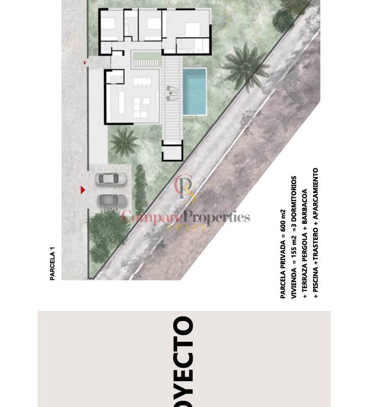 Las villas disponen de aparcamiento en pérgola para dos vehículos, trasteros exteriores, zona de terraza cubierta/pérgola, zona de barbacoa, baño exterior y piscina.