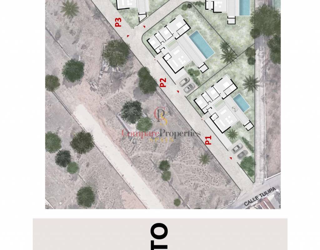 Magnífico complejo de agrupación de 4 viviendas, todas en una sola planta con parcela privada. Todas las villas se orientan a sur, con zonas pergoladas y ajardinadas en el exterior.