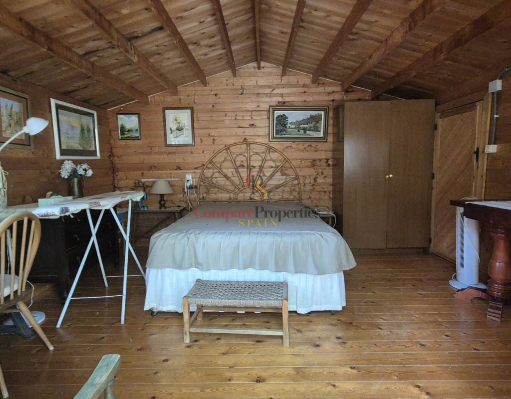 Se vende parcela de 10100m3 con casa de madera de 50m2 y dos apartamentos independientes para invitados.La casa se distribuye en entrada recibidor, salón comedor abierto, baño con bañera, cocina y área de lavado. En la segunda planta se encuentra una la habitación abierta con posibilidad de poner dos camas.El primer apartamento dispone de 25m2 con cama de matrimonio y baño en suite.El segundo apartamento es un trastero de 14m2.Esta propiedad consta de agua y luz y tiene la posibilidad de construir una vivienda de hormigón.