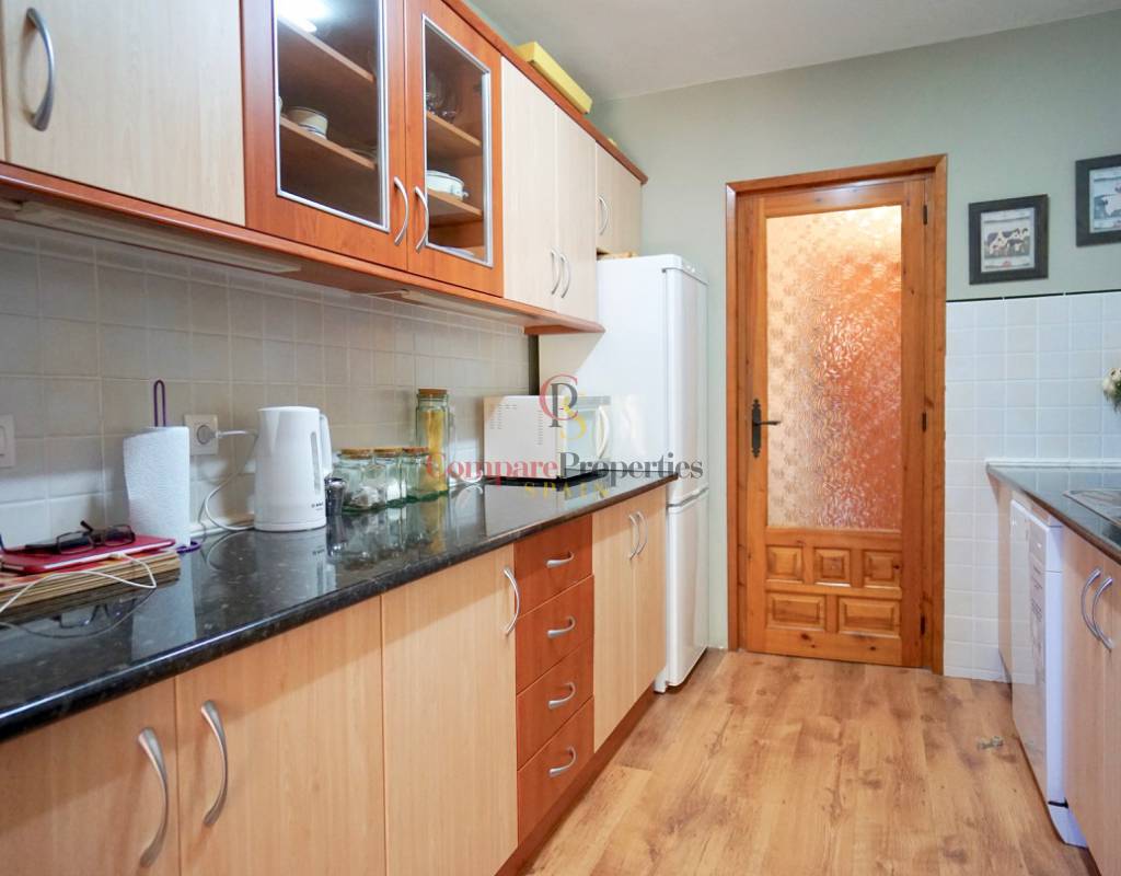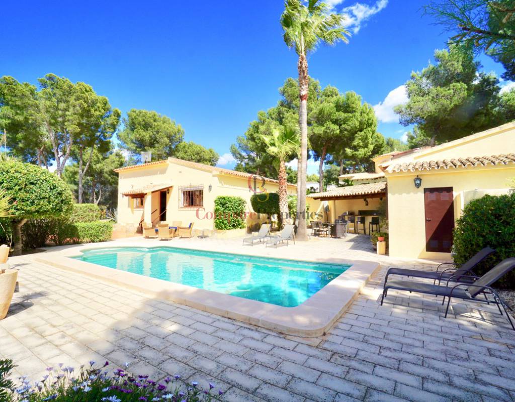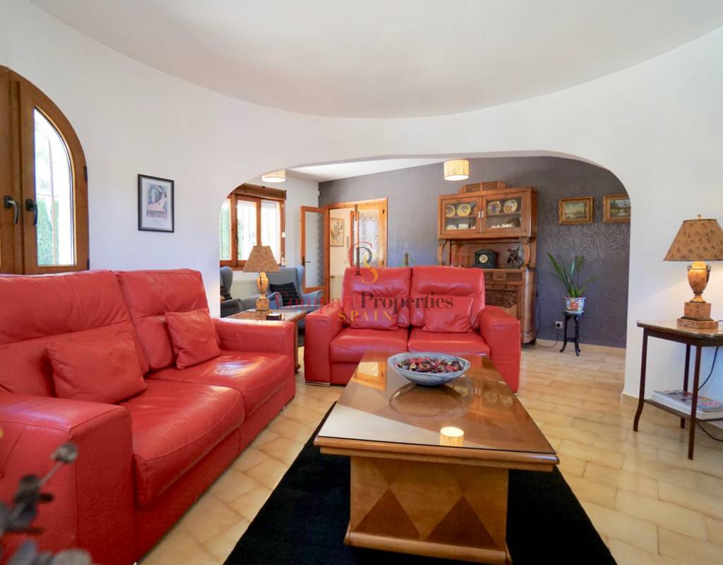 PRIX NÉGOCIABLE!!! Cette belle villa bien entretenue, de plain-pied, est située sur un grand terrain plat dans un quartier très populaire, urb. "San Jaime", sur la côte de Moraira / Benissa.