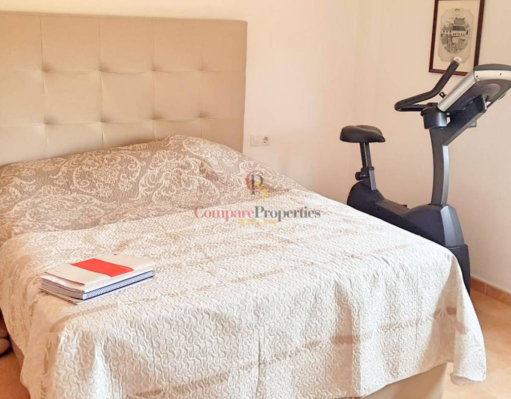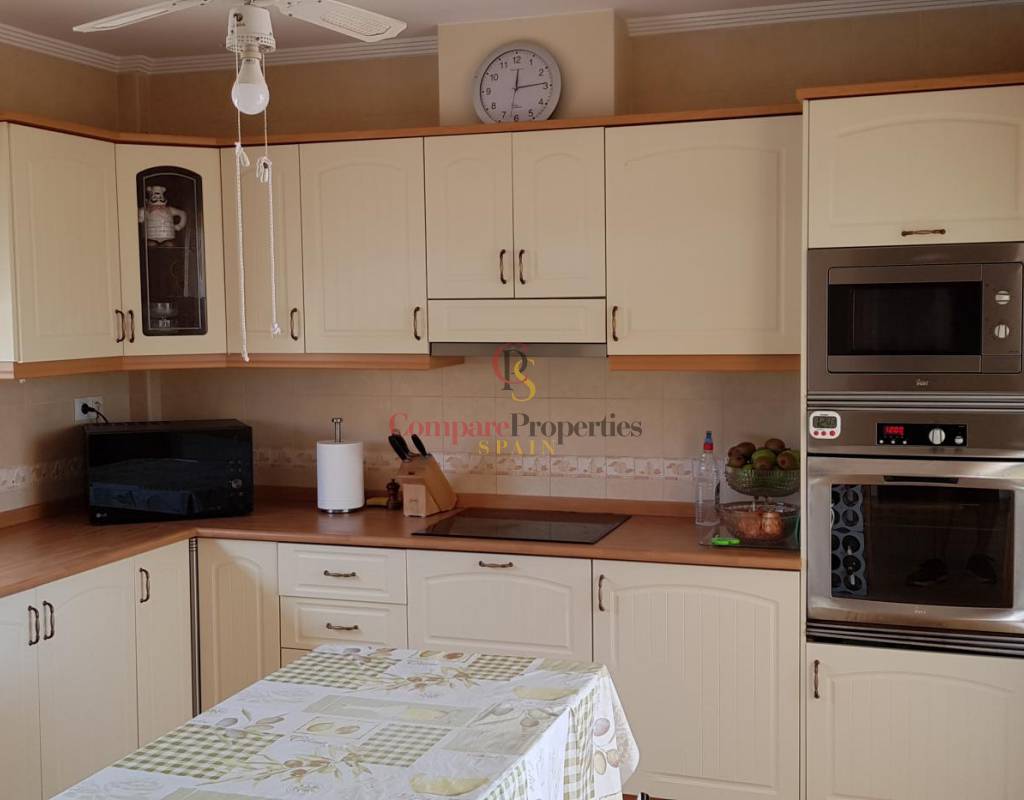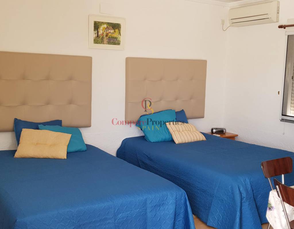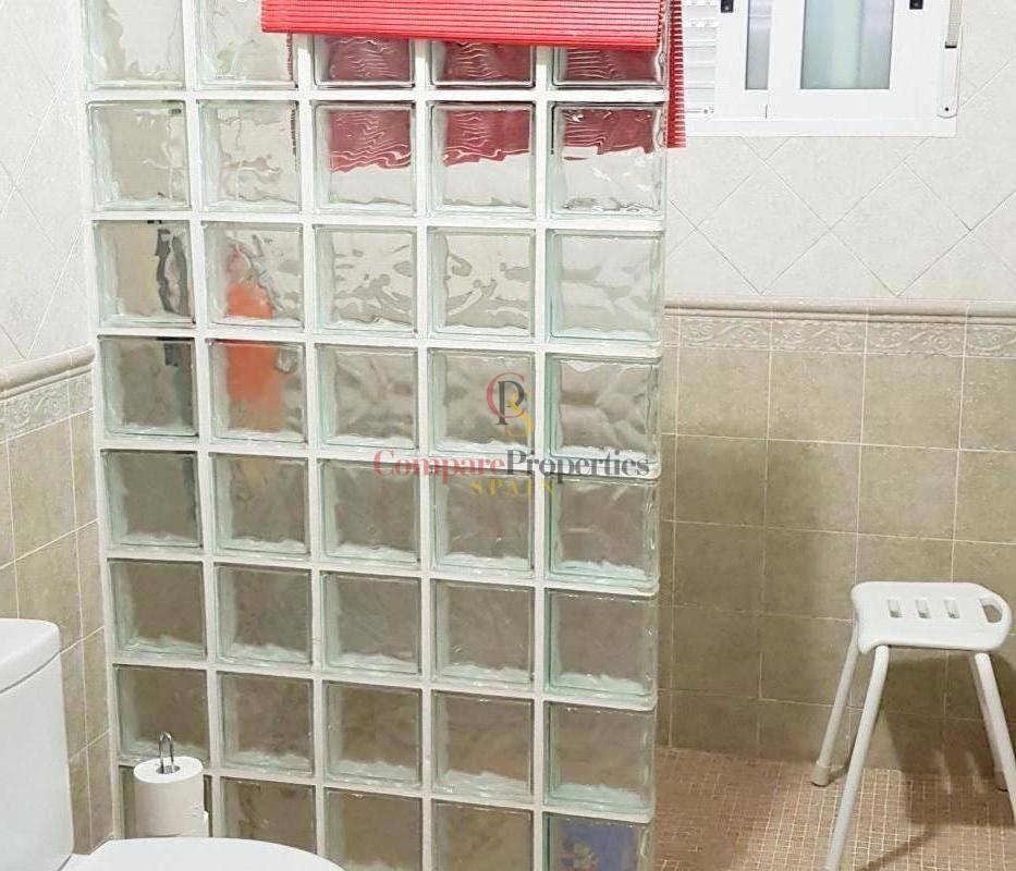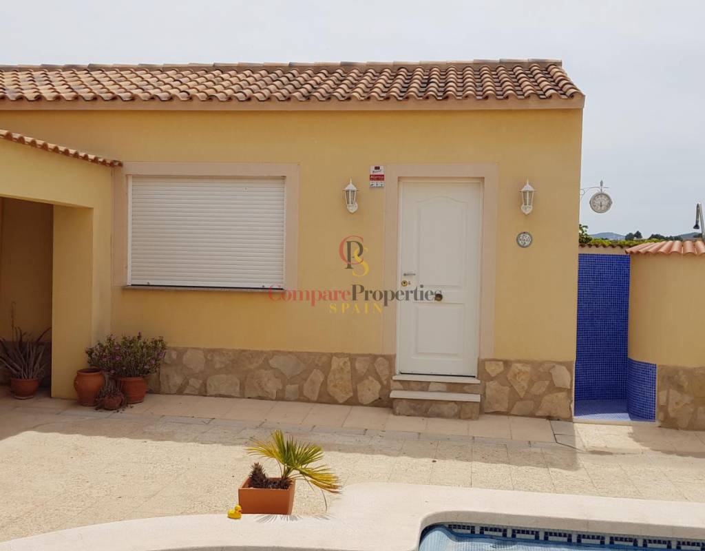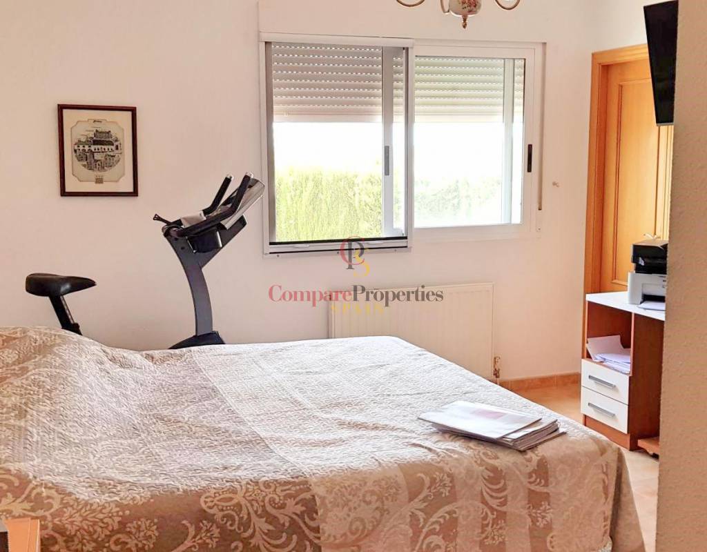 La piscine d'eau salée chauffée est équipée d'une couverture et d'une douche extérieure. Sous le patio couvert se trouve le barbecue et il y a également un évier séparé. En outre, il y a un terrain de pétanque et une maison d'été avec des jardins paysagers, un verger, des oliviers et des amandiers et est également partiellement clôturé. Un portail coulissant électrique avec télécommande mène à la large allée.