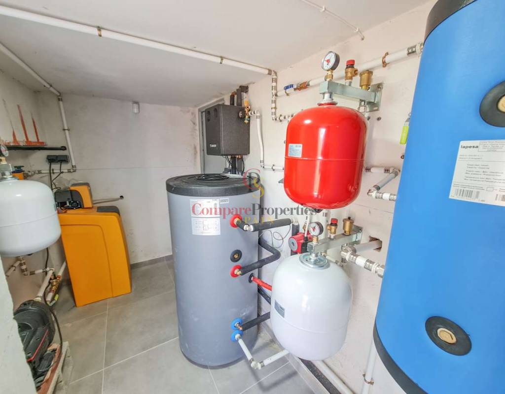 La villa mélange le style méditerranéen classique avec la modernité, combinant des éléments traditionnels tels que la pierre naturelle, le bois et la toiture, avec d'autres éléments modernes tels que de grandes fenêtres, des intérieurs design et la technologie 2021.br>br>