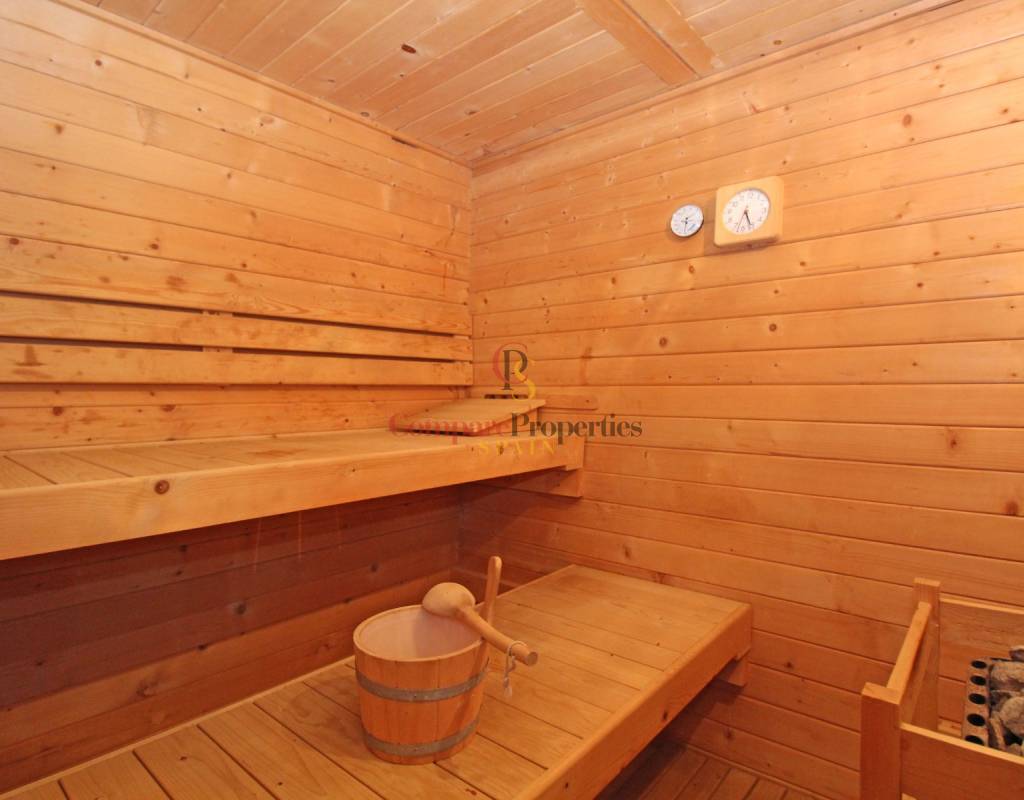 Le sous-sol est un atout supplémentaire, avec un sauna, un sauna turc et un salon avec une cuisine ouverte. Cet espace polyvalent offre d'innombrables possibilités, que ce soit pour le divertissement ou pour créer une suite confortable pour les invités.