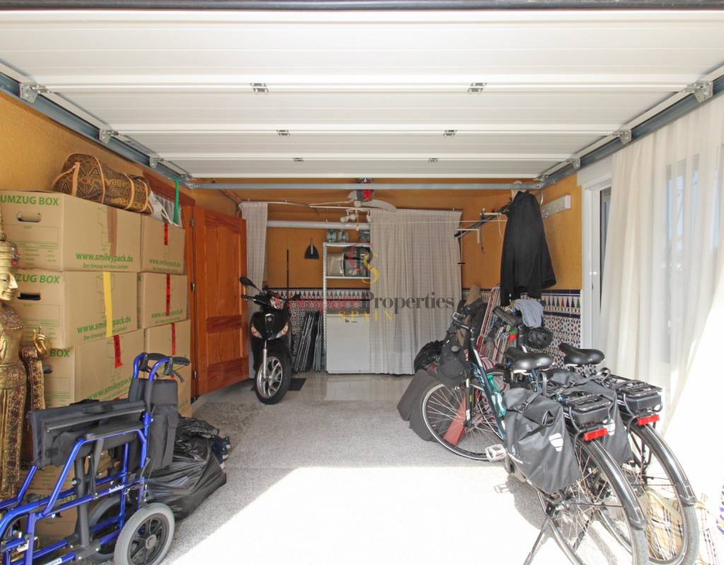 La maison est également équipée d'un système d'alarme et de caméras de sécurité. À l'extérieur, vous trouverez un jardin bien entretenu avec des palmiers et d'autres arbres fruitiers. Divertissez vos invités sur la terrasse couverte avec un espace barbecue ou détendez-vous dans le jacuzzi.