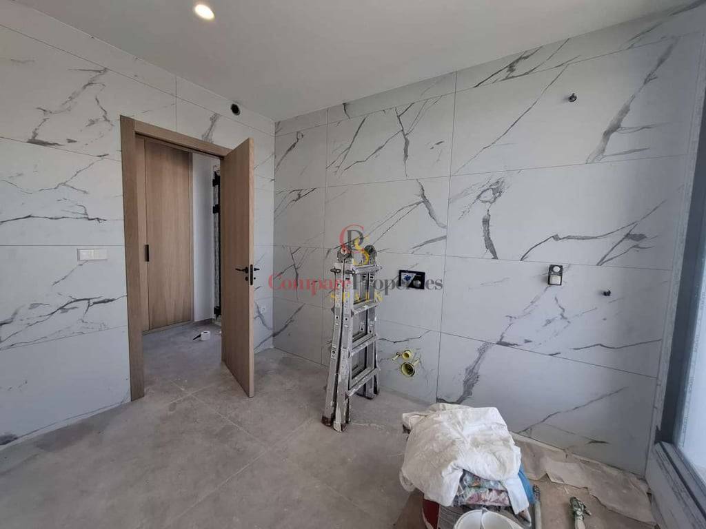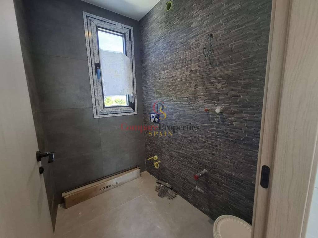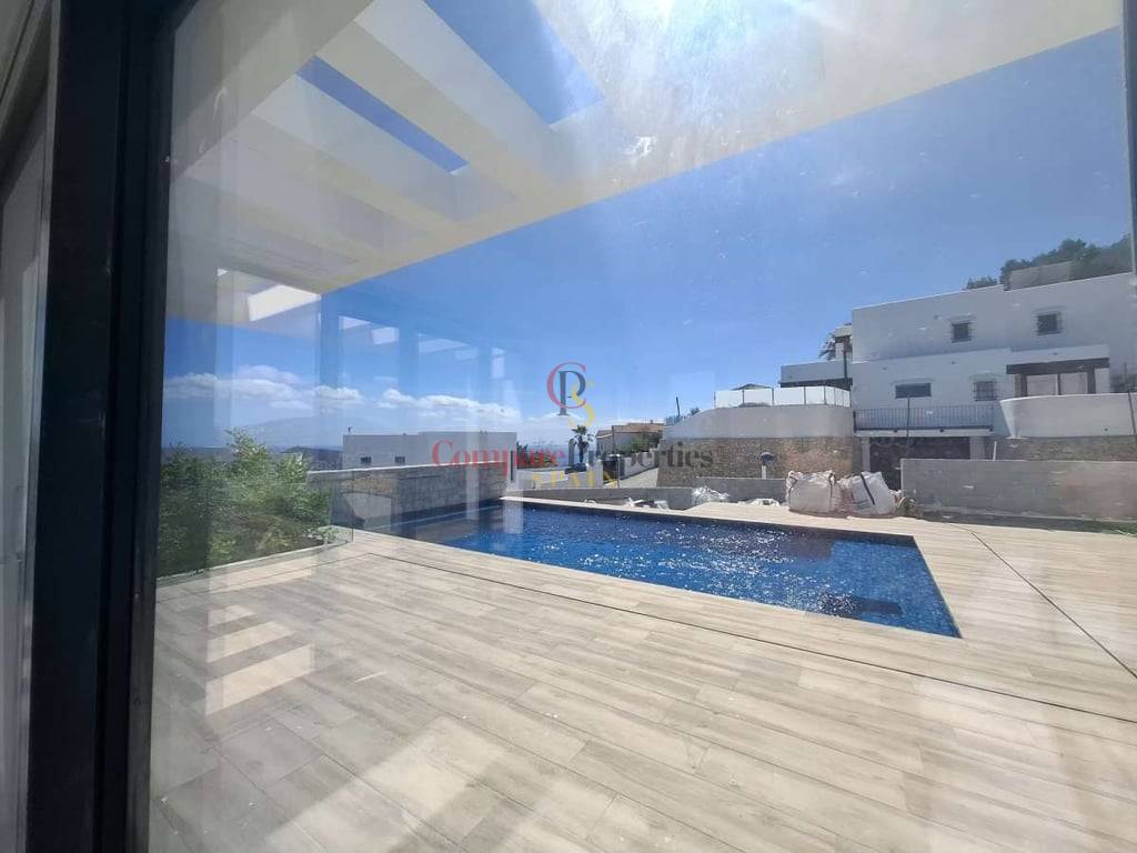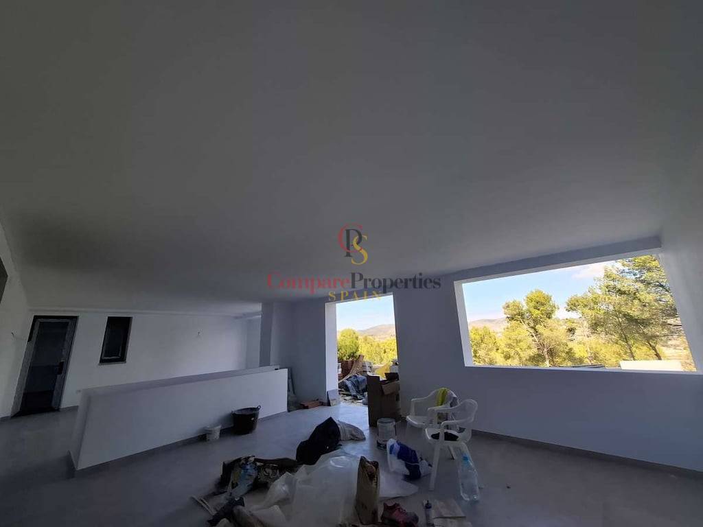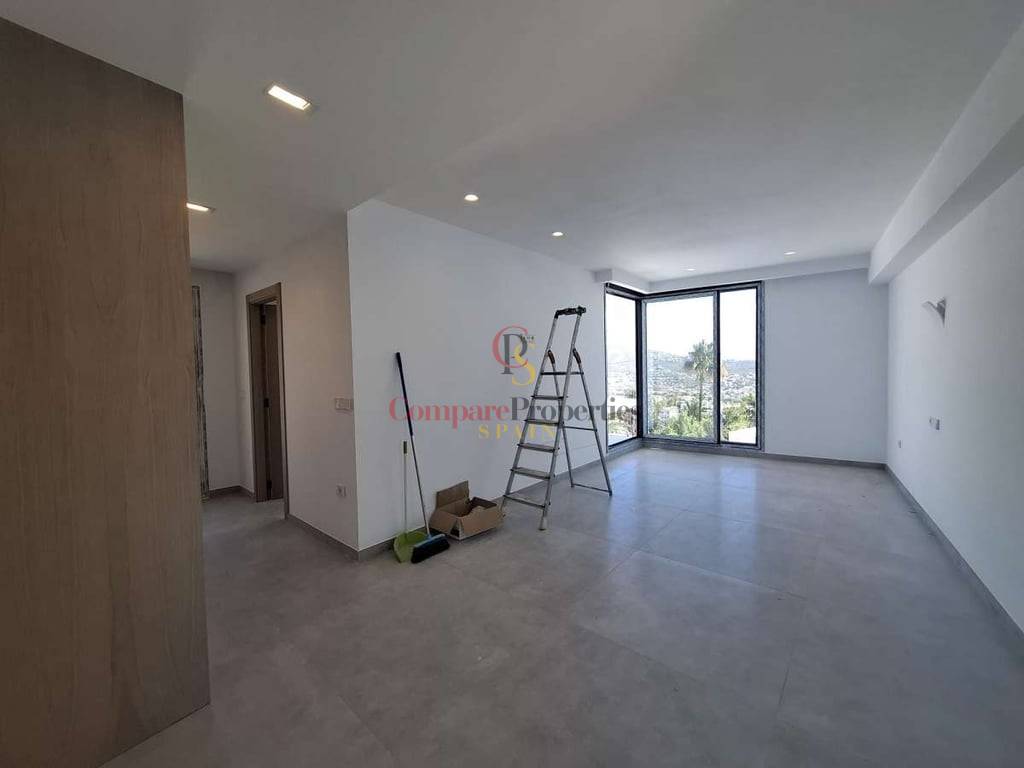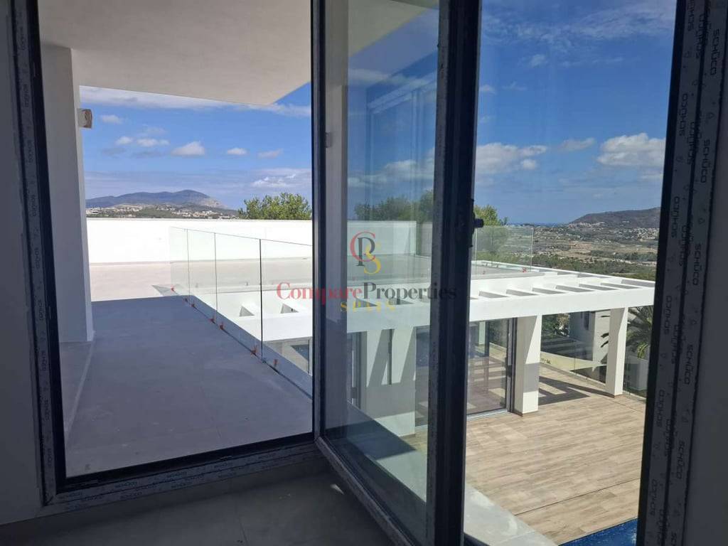 Villa de luxe dans le quartier de Benimeit, Moraira, sur un terrain d'angle de 817 m2. Larges vues panoramiques, vues partielles sur la mer depuis le rez-de-chaussée et vues panoramiques complètes sur la mer depuis le Compare Properties Spain étage. La maison a une superficie construite de 233,50 m2 répartis sur un rez-de-chaussée avec un hall d'entrée, des toilettes invités, un salon, une cuisine séparée, un couloir, 2 chambres et 1 salle de bain. A l'extérieur, une terrasse de près de 100 m2 entoure une piscine à débordement de 35 m2 et un barbecue. Le 1er étage est accessible par un escalier où se trouve la chambre principale avec 1 salle de bain en suite et dressing. Et à l'extérieur, il y a une terrasse avec vue panoramique sur la vallée et la mer. Au sous-sol, il y a un garage, un débarras et un réservoir d'eau d'irrigation. La villa a été conçue avec des matériaux de haute qualité, notamment des capteurs solaires sur le toit. Son achèvement est prévu pour fin 2023.