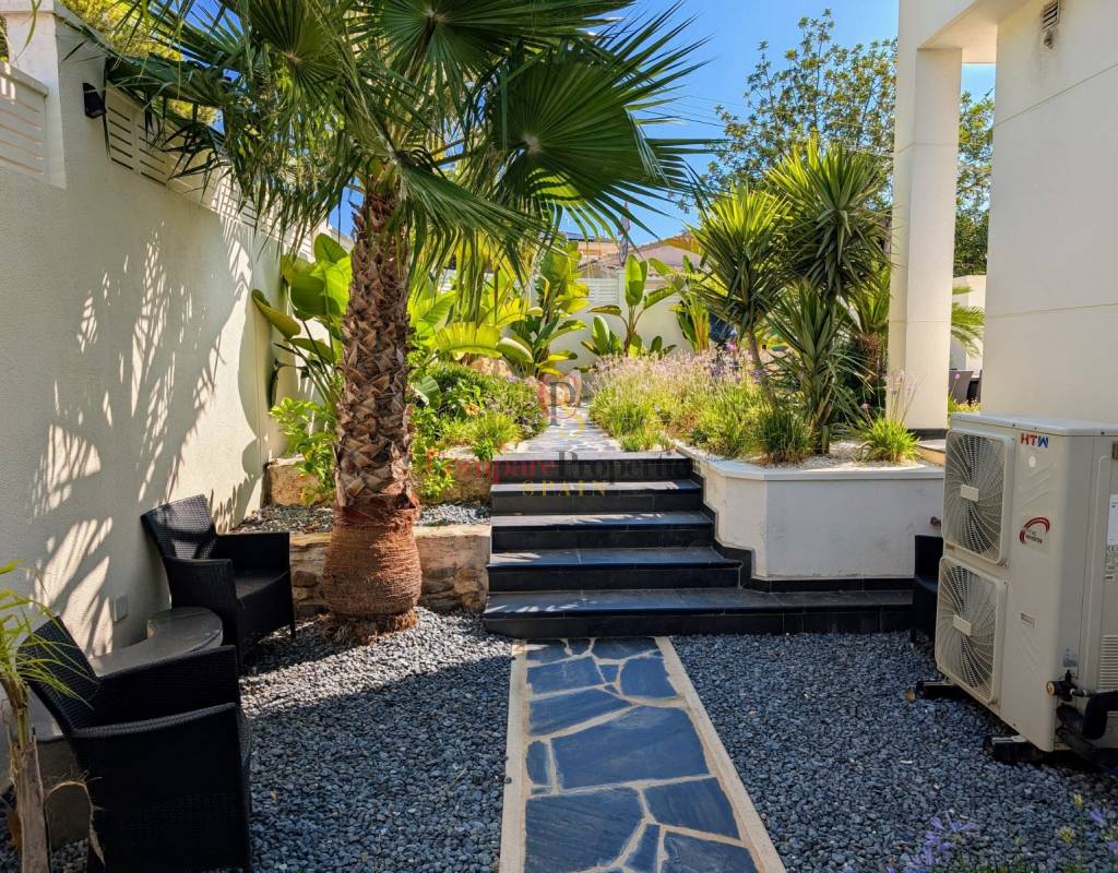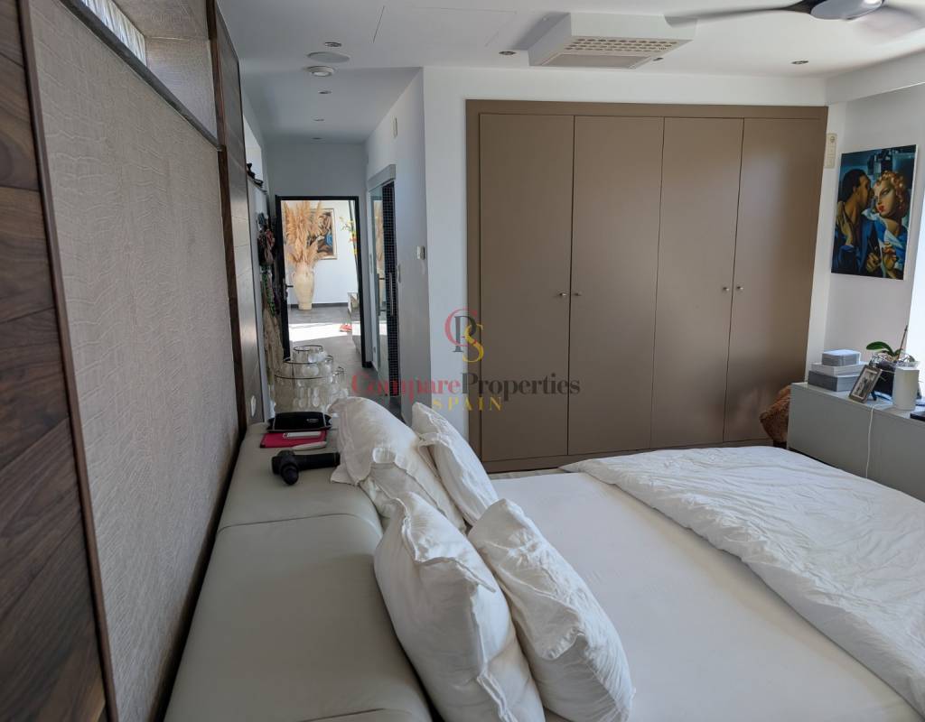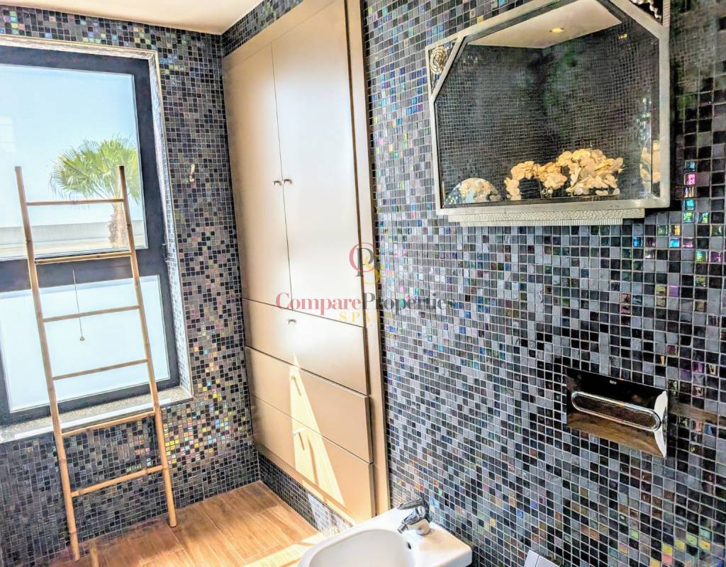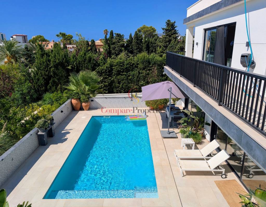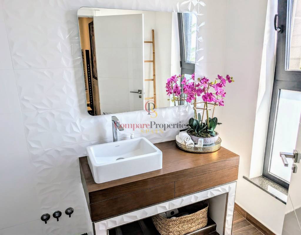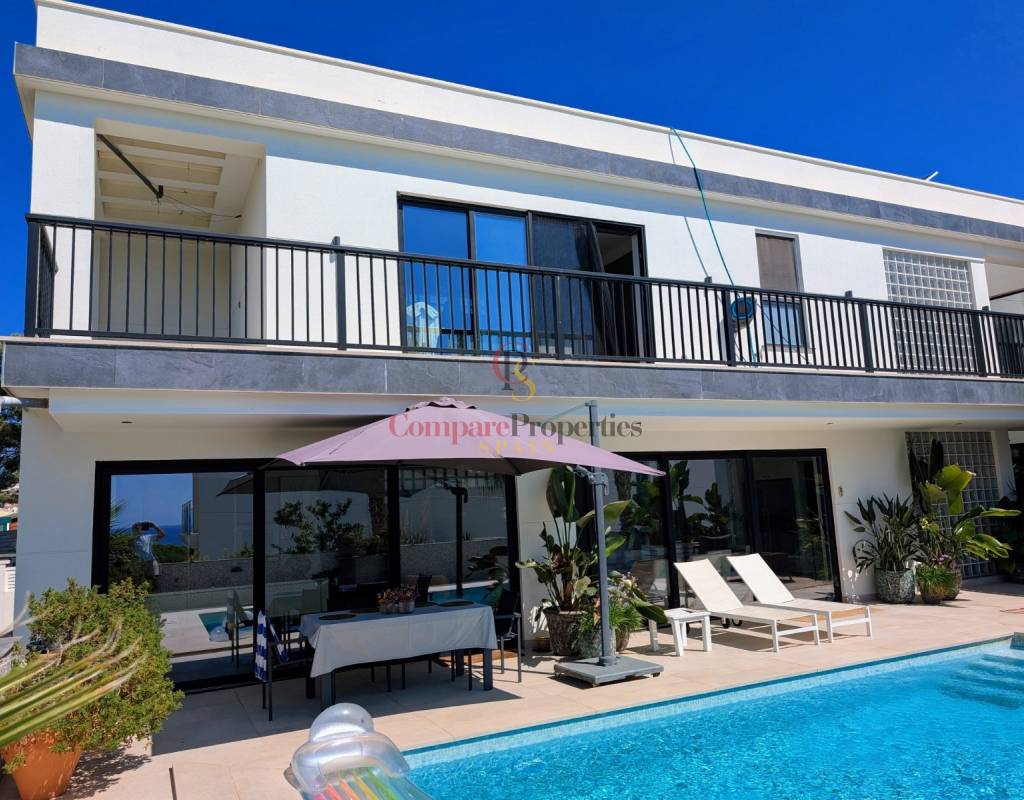 Cette luxueuse villa exotique et moderne avec vue sur la mer est située dans le quartier populaire de La Calalga à Calpe. La villa est distribuée sur trois étages et située sur un terrain de 800m2 avec un jardin tropical mature facile d'entretien. L'entrée de la propriété se fait par un parking spacieux avec un abri à voile à l'extérieur de l'entrée du garage. La villa a été conçue de manière exquise avec l'utilisation du verre partout où cela est possible afin de maximiser la lumière et l'expérience de vie intérieure/extérieure. Vous entrez dans l'étage principal, un couloir lumineux avec des toilettes pour invités et un mur de placards de rangement vous mène après l'escalier à la magnifique cuisine/salle à manger/salle familiale avec des portes et des fenêtres vitrées sur toute la hauteur donnant sur la terrasse de la piscine et un mur de pierre caractéristique pour donner à la pièce le facteur "wow". La cuisine design a été entièrement équipée avec des meubles en bois clair et crème, des plans de travail en granit noir et des appareils électroménagers en acier inoxydable. À l'autre bout du hall d'entrée se trouve le salon, une pièce étonnamment spacieuse avec une cheminée contemporaine et des portes vitrées pleine hauteur menant à la cuisine d'été tropicale et à la terrasse de la piscine. La terrasse de la piscine est accessible à la fois depuis le salon et la cuisine. Il y a deux terrasses couvertes et des marches menant au jardin. À gauche, deux chambres doubles, dont l'une avec vue sur la mer, sont dotées d'armoires et de salles de douche attenantes. À droite se trouve la chambre principale, une grande pièce avec de nombreux placards, un meuble de télévision, des portes vitrées menant au balcon, une vue sur la mer et une grande salle de douche en-suite avec des rangements supplémentaires. En descendant l'escalier depuis le hall d'entrée, on accède au demi sous-sol, où l'on trouve une grande buanderie et un grand débarras qui donne accès à l'immense garage. Au bout du couloir se trouve la salle de bien-être, qui pourrait être une grande chambre 4, comprenant un sauna, une table de massage/traitement et une salle de douche. La villa est entourée sur trois côtés d'un jardin facile d'entretien comprenant des plantes matures, des palmiers et des arbres fruitiers, tous avec auto-irrigation.- Points clés :- 3 chambres à coucher, possibilité d'en faire 4- 4 salles de bains- Toilettes invités- Salle de séjour- Cuisine/Famille- Buanderie- Nombreux espaces de rangement- Le propriétaire a laissé un espace pour l'installation d'un ascenseur.- La terrasse couverte à l'extrémité du Compare Properties Spain étage peut être transformée en bureau avec vue sur la mer.- Système de climatisation central par aérothermie- Système photovoltaïque produisant de l'électricité avec 12 panneaux solaires- Système de sonorisation intégré- Système d'aspiration centralisé- L'emplacement est Partida Calalga : - A distance de marche du centre de sports nautiques Bassetes, de la plage La Fustera ou de la plage Playa de la Fossa- A distance de marche d'un grand choix de restaurants- A 14 minutes en voiture d'un terrain de golf- A 19 minutes en voiture de l'accès à l'autoroute à Benissa- Si vous cherchez une villa extraordinaire qui vous offre un design contemporain, un emplacement pratique, l'efficacité énergétique et un merveilleux style de vie intérieur/extérieur, ne cherchez pas plus loin.