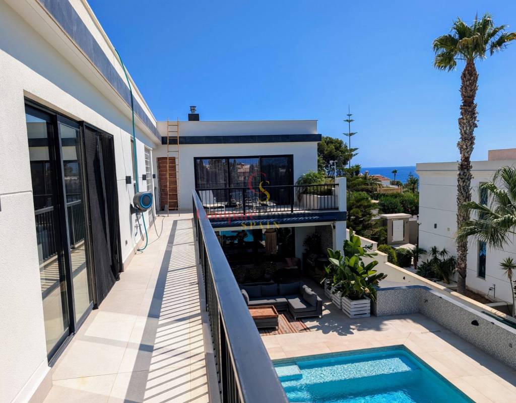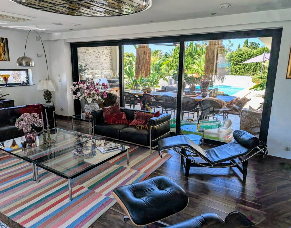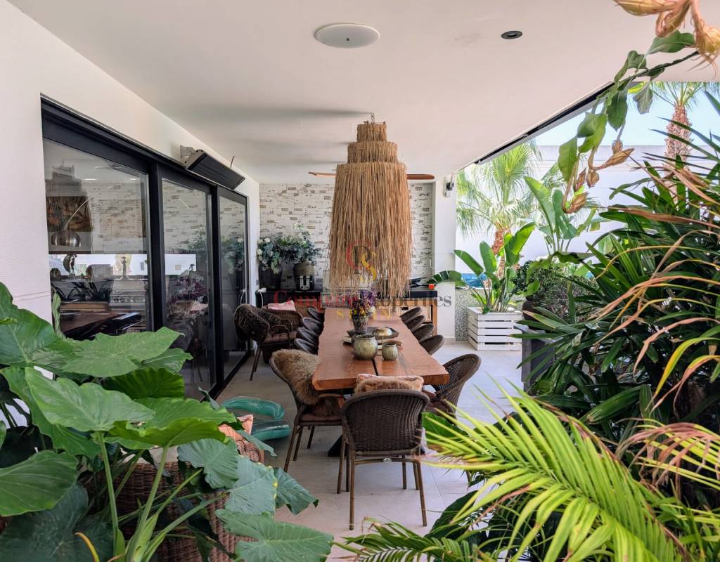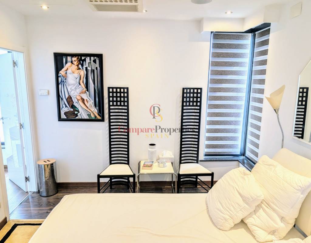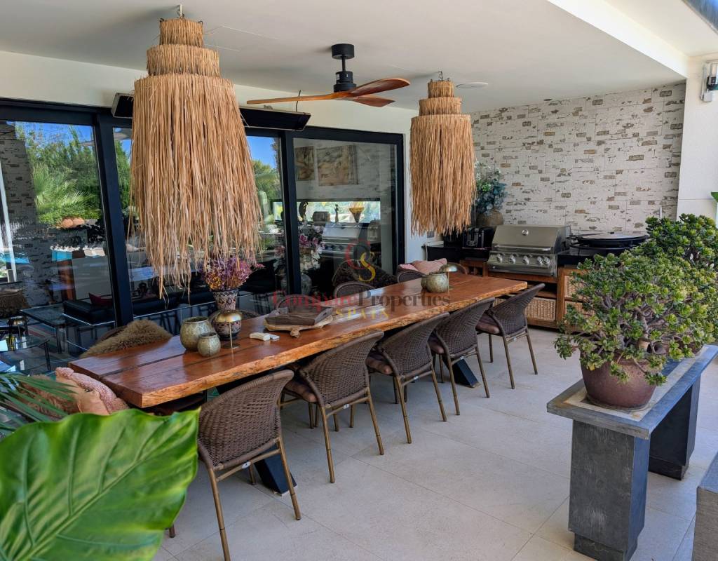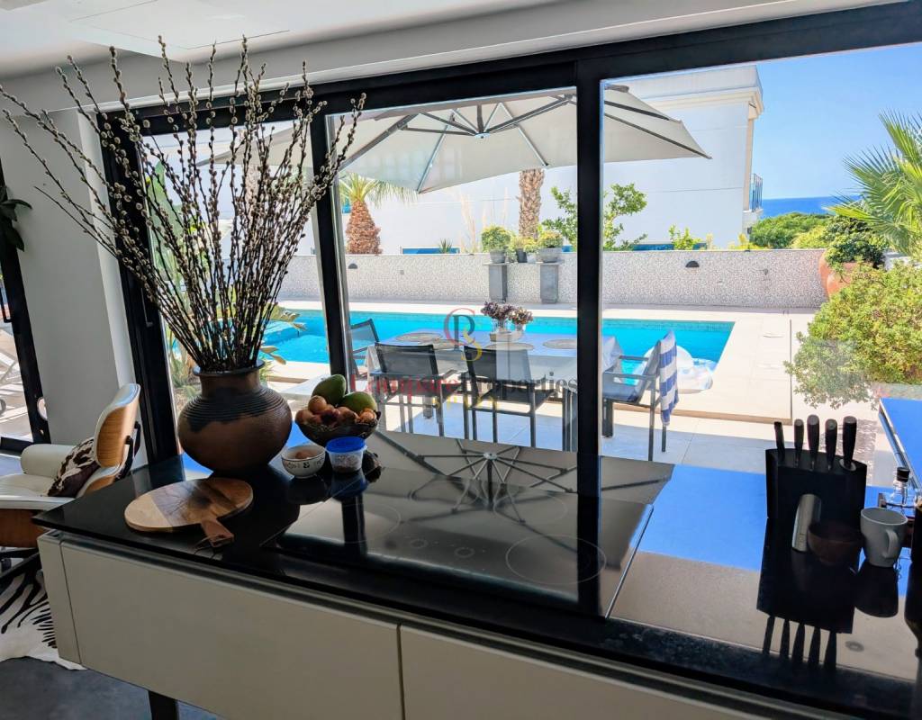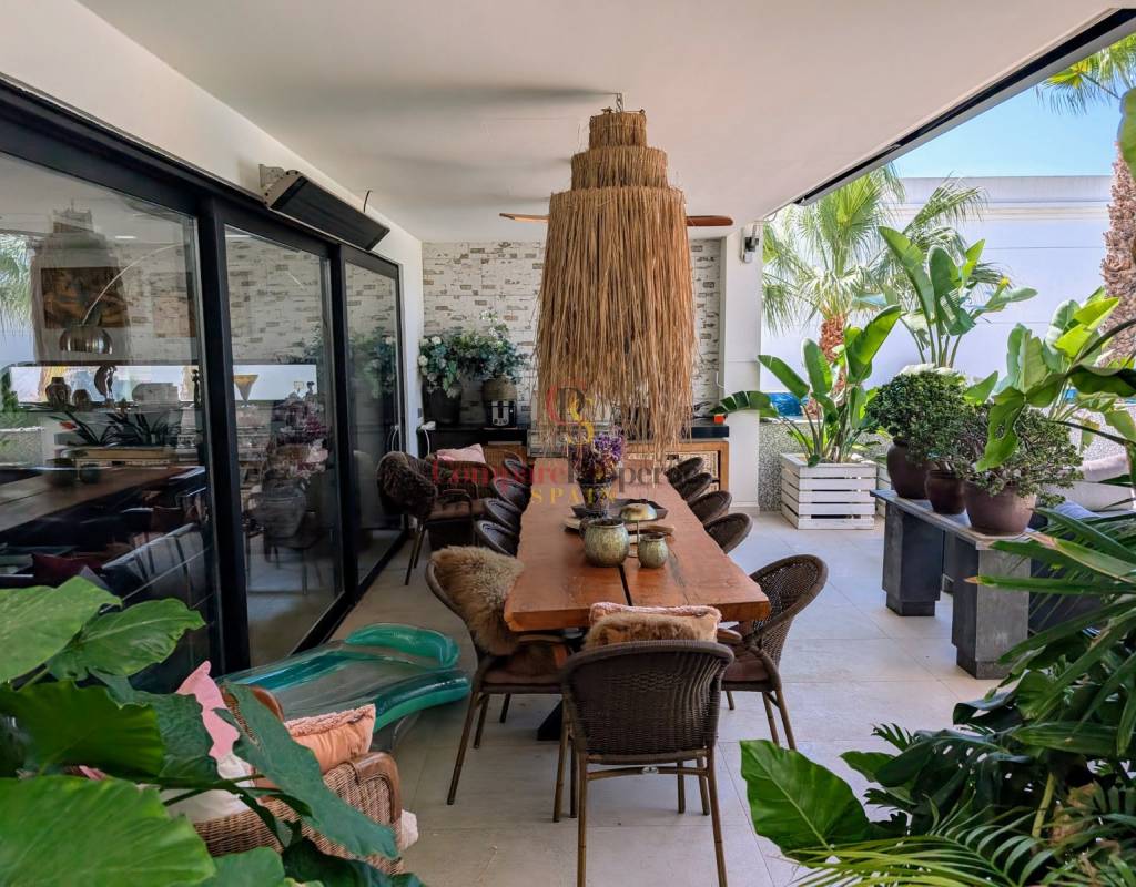 Cette luxueuse villa exotique et moderne avec vue sur la mer est située dans le quartier populaire de La Calalga à Calpe. La villa est distribuée sur trois étages et située sur un terrain de 800m2 avec un jardin tropical mature facile d'entretien. L'entrée de la propriété se fait par un parking spacieux avec un abri à voile à l'extérieur de l'entrée du garage. La villa a été conçue de manière exquise avec l'utilisation du verre partout où cela est possible afin de maximiser la lumière et l'expérience de vie intérieure/extérieure. Vous entrez dans l'étage principal, un couloir lumineux avec des toilettes pour invités et un mur de placards de rangement vous mène après l'escalier à la magnifique cuisine/salle à manger/salle familiale avec des portes et des fenêtres vitrées sur toute la hauteur donnant sur la terrasse de la piscine et un mur de pierre caractéristique pour donner à la pièce le facteur "wow". La cuisine design a été entièrement équipée avec des meubles en bois clair et crème, des plans de travail en granit noir et des appareils électroménagers en acier inoxydable. À l'autre bout du hall d'entrée se trouve le salon, une pièce étonnamment spacieuse avec une cheminée contemporaine et des portes vitrées pleine hauteur menant à la cuisine d'été tropicale et à la terrasse de la piscine. La terrasse de la piscine est accessible à la fois depuis le salon et la cuisine. Il y a deux terrasses couvertes et des marches menant au jardin. À gauche, deux chambres doubles, dont l'une avec vue sur la mer, sont dotées d'armoires et de salles de douche attenantes. À droite se trouve la chambre principale, une grande pièce avec de nombreux placards, un meuble de télévision, des portes vitrées menant au balcon, une vue sur la mer et une grande salle de douche en-suite avec des rangements supplémentaires. En descendant l'escalier depuis le hall d'entrée, on accède au demi sous-sol, où l'on trouve une grande buanderie et un grand débarras qui donne accès à l'immense garage. Au bout du couloir se trouve la salle de bien-être, qui pourrait être une grande chambre 4, comprenant un sauna, une table de massage/traitement et une salle de douche. La villa est entourée sur trois côtés d'un jardin facile d'entretien comprenant des plantes matures, des palmiers et des arbres fruitiers, tous avec auto-irrigation.- Points clés :- 3 chambres à coucher, possibilité d'en faire 4- 4 salles de bains- Toilettes invités- Salle de séjour- Cuisine/Famille- Buanderie- Nombreux espaces de rangement- Le propriétaire a laissé un espace pour l'installation d'un ascenseur.- La terrasse couverte à l'extrémité du Compare Properties Spain étage peut être transformée en bureau avec vue sur la mer.- Système de climatisation central par aérothermie- Système photovoltaïque produisant de l'électricité avec 12 panneaux solaires- Système de sonorisation intégré- Système d'aspiration centralisé- L'emplacement est Partida Calalga : - A distance de marche du centre de sports nautiques Bassetes, de la plage La Fustera ou de la plage Playa de la Fossa- A distance de marche d'un grand choix de restaurants- A 14 minutes en voiture d'un terrain de golf- A 19 minutes en voiture de l'accès à l'autoroute à Benissa- Si vous cherchez une villa extraordinaire qui vous offre un design contemporain, un emplacement pratique, l'efficacité énergétique et un merveilleux style de vie intérieur/extérieur, ne cherchez pas plus loin.