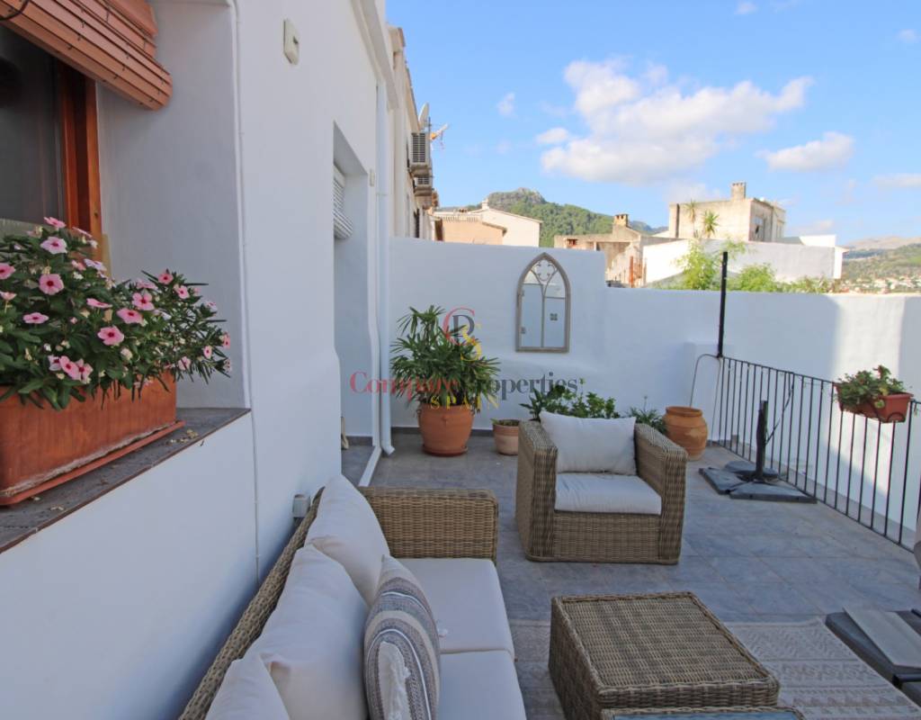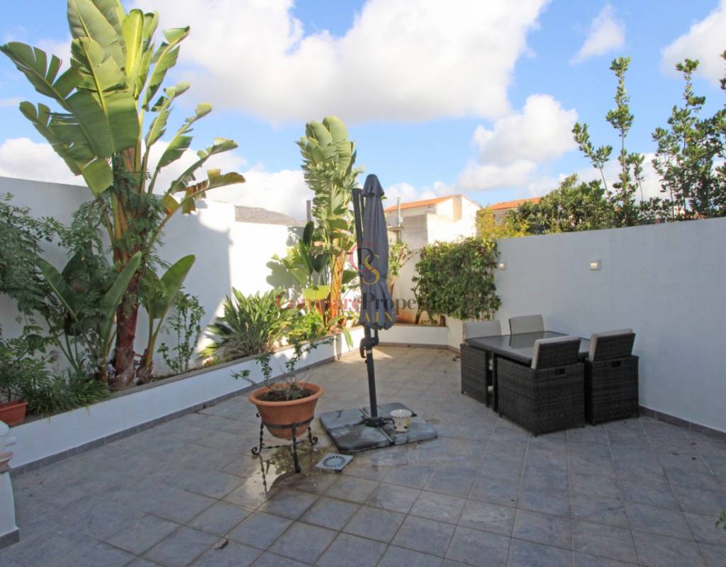Les portes de la cour donnent sur une grande terrasse d'environ 18 m². Elle dispose également d'un grand toit-terrasse avec une vue panoramique à 360° sur la vallée d'Orba, où se trouve une pergola aménagée en salle à manger pour profiter des repas en plein air lors des chaudes nuits d'été.