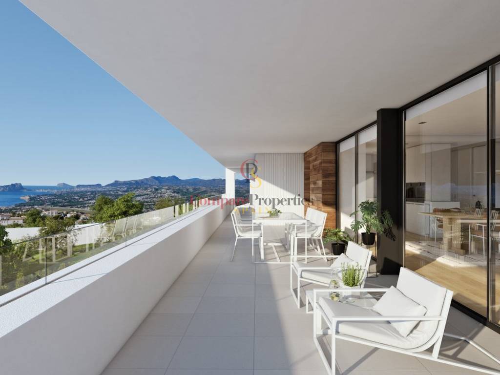 Espace de Vie Ouvert : Le GRAND SALON À AIR OUVERT (SALON, SALLE À MANGER ET CUISINE) offre un accès à une terrasse principale qui longe toute la façade.Limites Estompées : GRANDES FENÊTRES COULISSANTES ESTOMPENT LA LIMITE entre l\'intérieur et l\'extérieur, offrant des VUES ININTERROMPUES sur la MER ET LE PEÑÓN DE IFACH depuis n\'importe quel point.Finitions de Luxe : Les finitions intérieures, avec PARQUET EN BOIS, MENUISERIE SUR MESURE et des meubles en TONS NEUTRES, évoquent SERENITÉ, CONFORT ET SOPHISTICATION.Chambres et Sanctuaire PrivéLe REZDECHAUSSÉE abrite TROIS CHAMBRES DOUBLES, toutes avec ACCÈS DIRECT À LA TERRASSE et des placards intégrés, ainsi qu\'une SUITE PARENTALE disposant d\'un VASTE DRESSING et d\'une DOUCHE ATTENANTE. Chaque élément est conçu pour créer une ambiance SPACIEUSE, FONCTIONNELLE, DÉTENDUE ET ÉLÉGANTE.