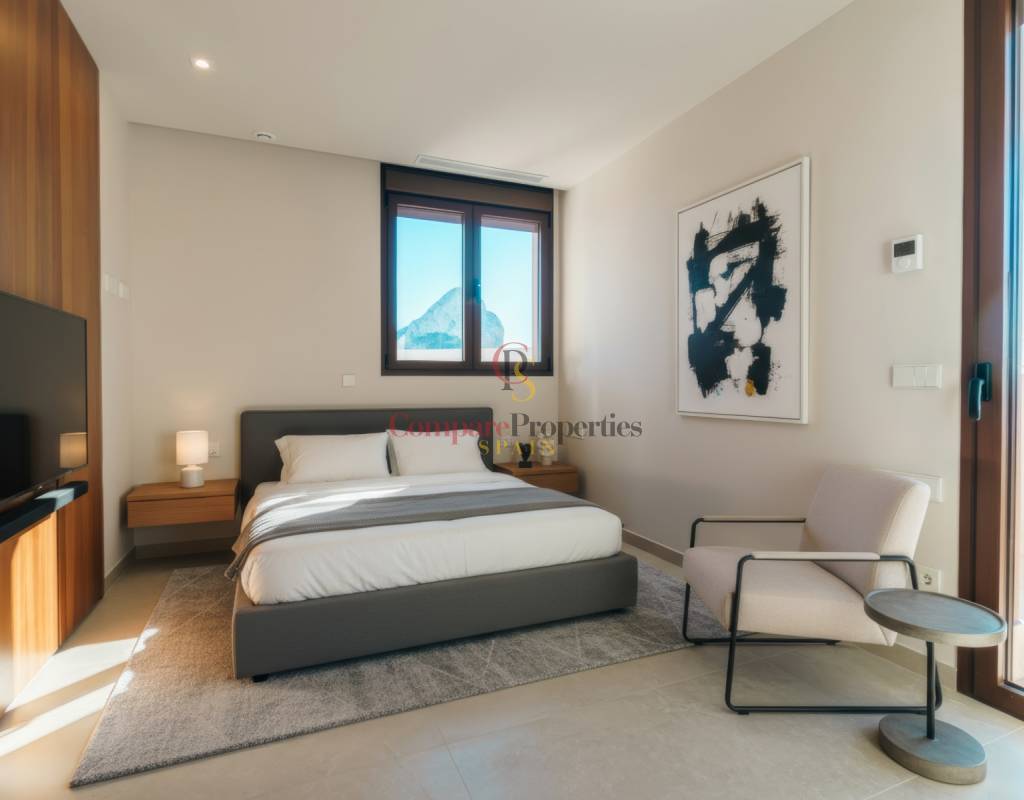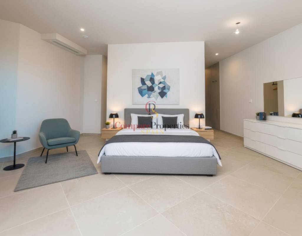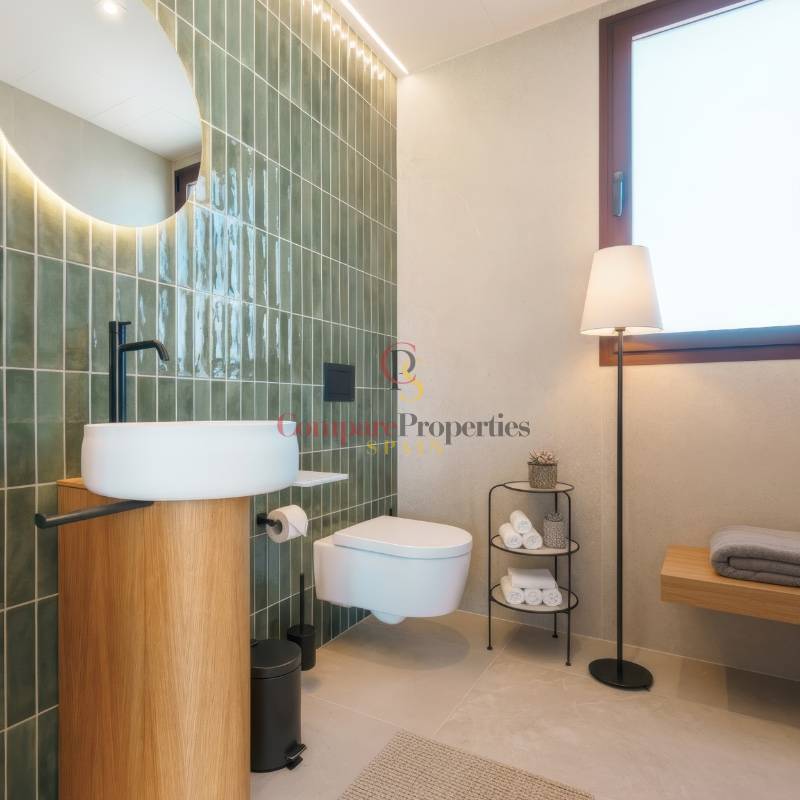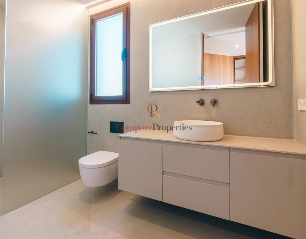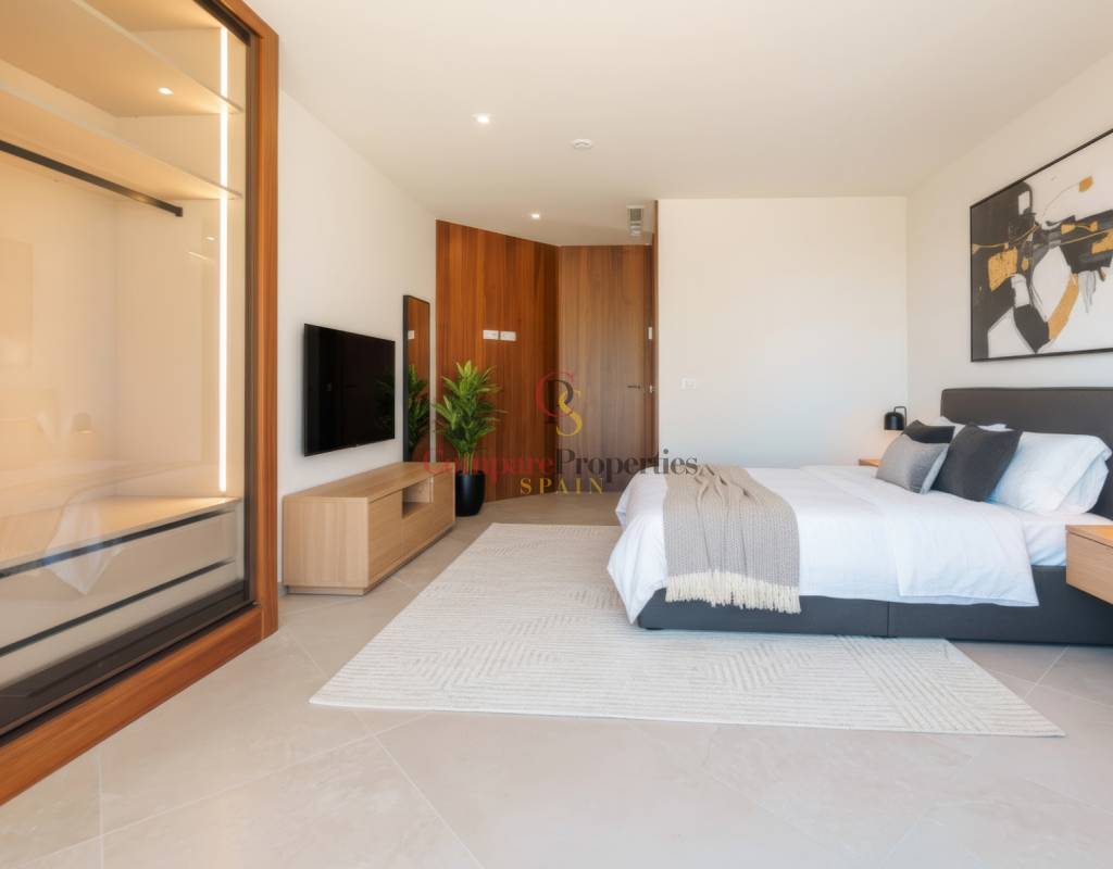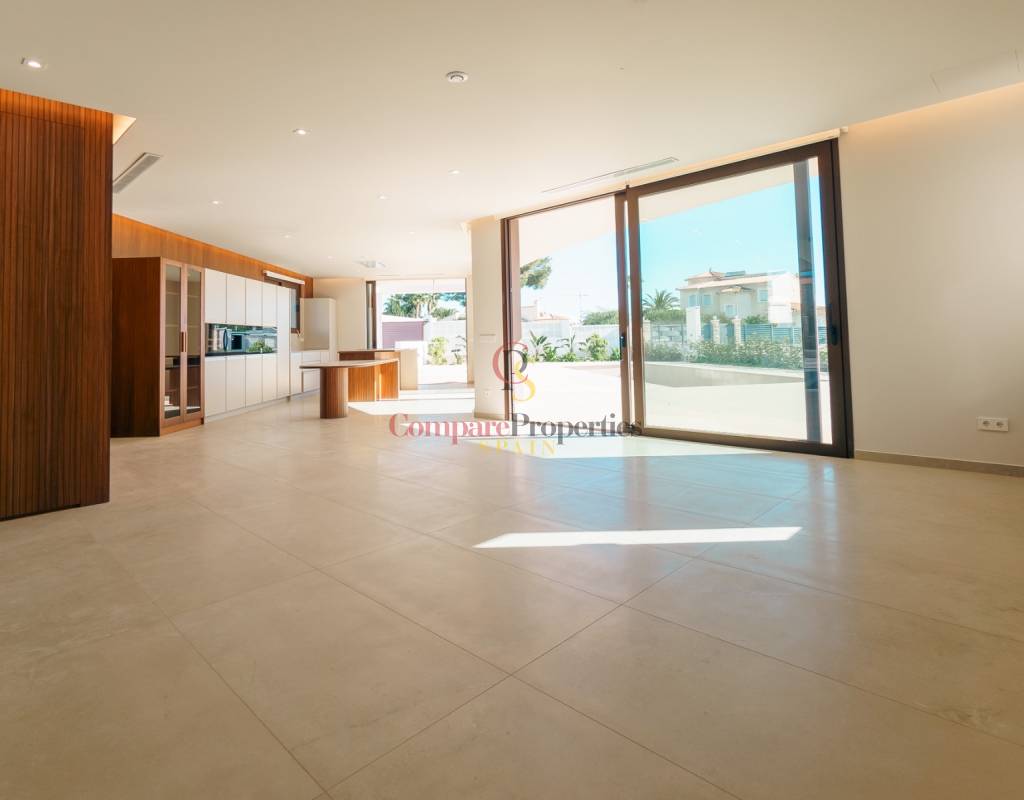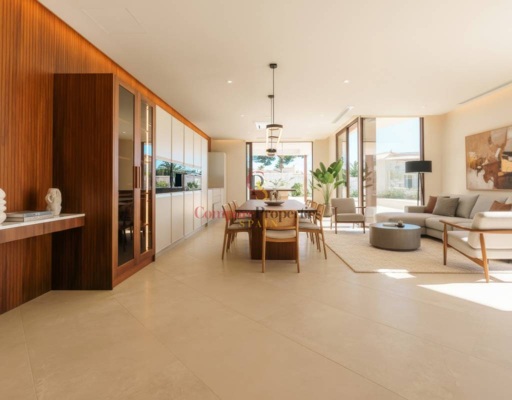 Intérieurs au design contemporain, sols grand format et larges baies vitrées. Cuisine moderne ouverte sur le salon, fonctionnelle et élégante.