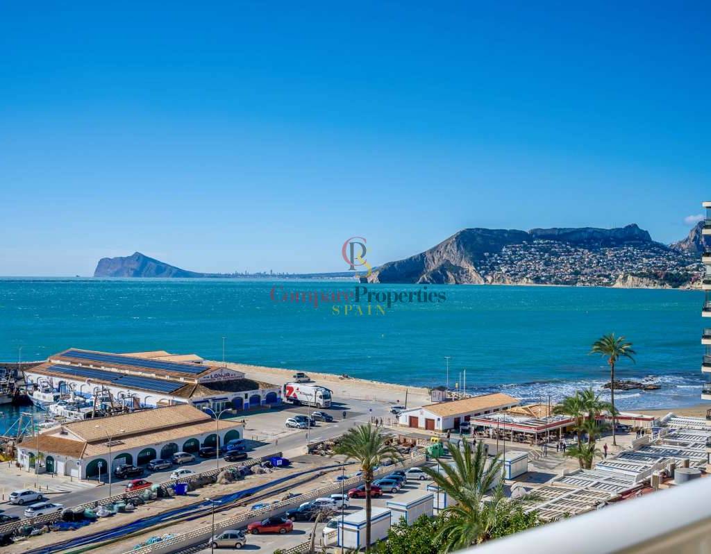 À deux pas du rivage, où le bruit des vagues berce le quotidien, cet appartement bénéficie d'une situation exceptionnelle en première ligne. Bars, restaurants, cafés et commerces de proximité sont accessibles à pied, tandis que les écoles et le centre-ville sont à proximité immédiate. Un emplacement idéal pour une résidence secondaire ou principale confortable, et une excellente opportunité d'investissement grâce à son emplacement privilégié. Situé dans un immeuble bien entretenu construit en 1987, le bien dispose d'un ascenseur et d'un accès entièrement adapté aux personnes à mobilité réduite, alliant confort et design bien pensé. L'appartement est baigné de lumière naturelle grâce à sa triple orientation, avec une exposition principale plein sud. À l'intérieur, vous trouverez deux chambres, une salle de bain complète, une cuisine fermée et fonctionnelle, et un salon accueillant s'ouvrant sur un ravissant balcon. De là, la vue se déploie sans effort : le bleu infini de la Méditerranée, l'emblématique Peñón de Ifach et la ville animée en contrebas – un tableau vivant qui ne se démode jamais. Un garage privé fermé est inclus dans le prix, ajoutant confort et valeur à ce bien déjà exceptionnel. Que vous recherchiez une escapade sereine en bord de mer, un investissement locatif judicieux ou un endroit où profiter de la vie toute l'année sous le soleil, cet appartement offre une combinaison rare d'emplacement, de vues et de style de vie.