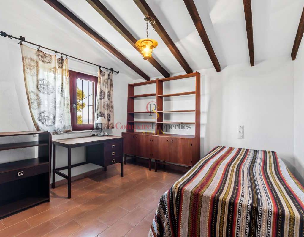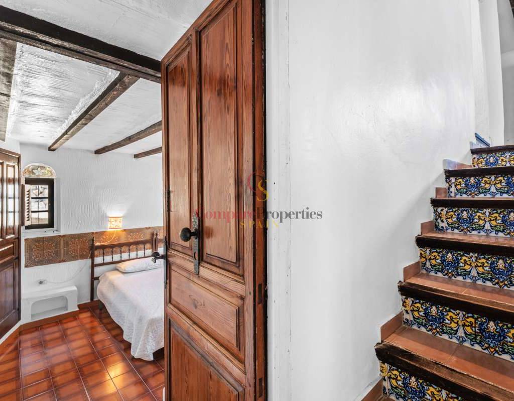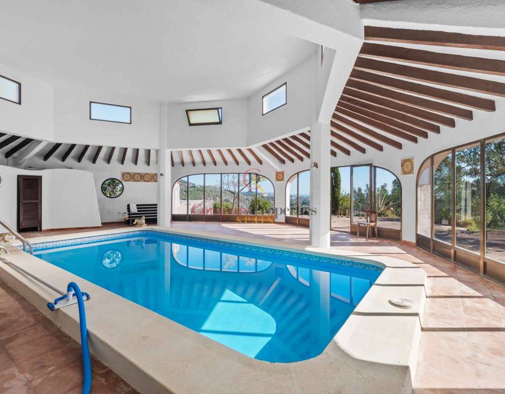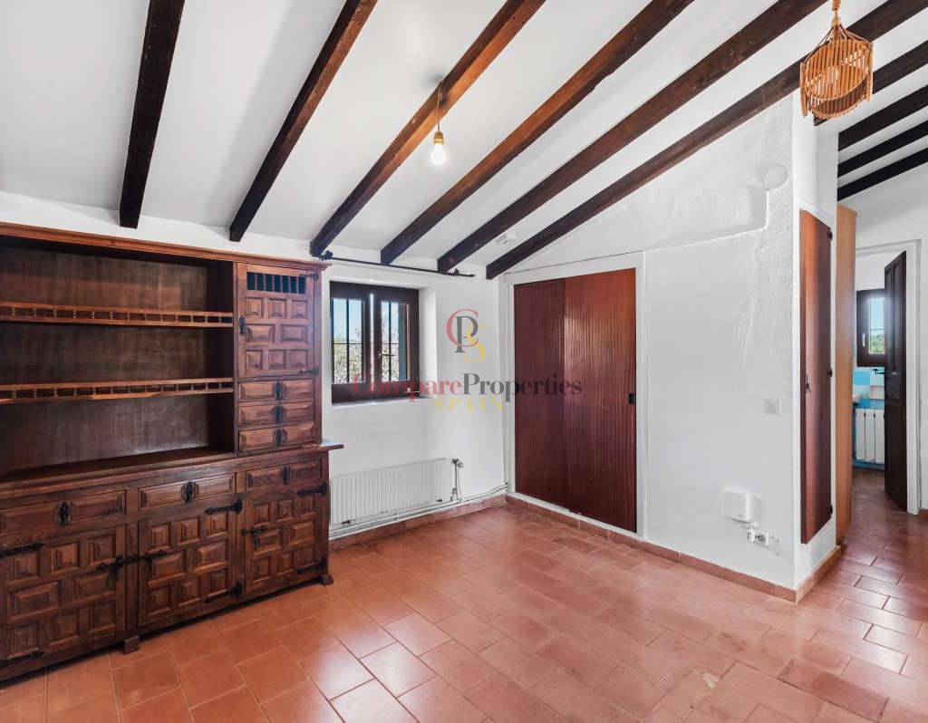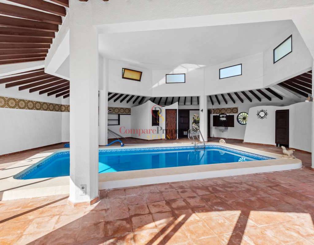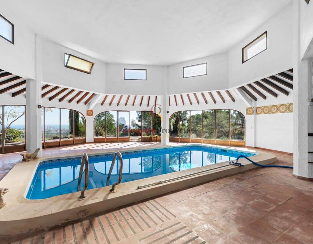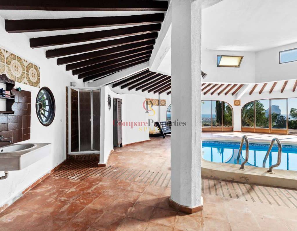 Située sur un généreux terrain de 3 671 m², cette propriété de caractère, construite en 1950, offre une opportunité rare d'acquérir une maison avec une vue panoramique imprenable sur la mer Méditerranée, les montagnes, l'emblématique Peñón de Ifach et la ville de Calpe. D'une surface construite totale de 431 m² et d'une surface habitable de 121 m², la propriété allie authenticité, espace et potentiel, ce qui la rend idéale aussi bien comme résidence principale que comme investissement locatif. Nichée dans un quartier résidentiel paisible, la maison bénéficie d'une grande intimité tout en restant proche de toutes les commodités. Bars et restaurants sont à seulement 5 à 7 minutes en voiture, la plage est accessible en une dizaine de minutes et les terrains de golf et de tennis sont facilement accessibles à proximité. L'aéroport international d'Alicante est à environ une heure, garantissant des liaisons internationales pratiques. Son emplacement privilégié rend la propriété idéale aussi bien pour y vivre à l'année que pour y passer des vacances. La maison dispose d'un parking pour plusieurs voitures et vous accueille par deux entrées séparées donnant sur la pièce de vie. À l'intérieur, vous découvrirez un salon chaleureux avec cheminée, une cuisine, un cellier, une cave et des toilettes invités. Depuis la maison principale, vous accédez directement à une piscine intérieure avec sauna et douche, créant ainsi un havre de bien-être privé dont vous pourrez profiter toute l'année. À l'étage, accessible par un escalier, se trouvent quatre chambres et deux salles de bains. Les chambres bénéficient de magnifiques vues sur la montagne, baignant chaque pièce de lumière naturelle et créant une atmosphère paisible. Cette propriété a une âme : une maison où mer et montagne se rencontrent, où les couchers de soleil font partie du quotidien et où l'imagination transforme le potentiel en quelque chose d'exceptionnel.