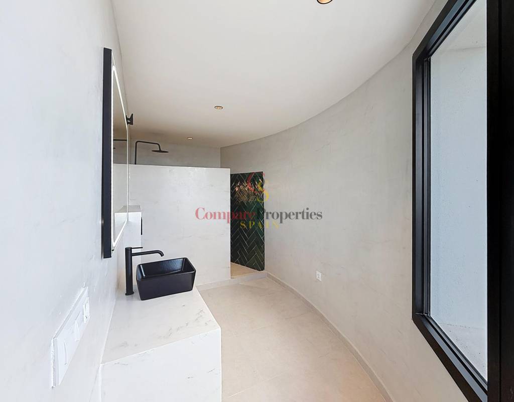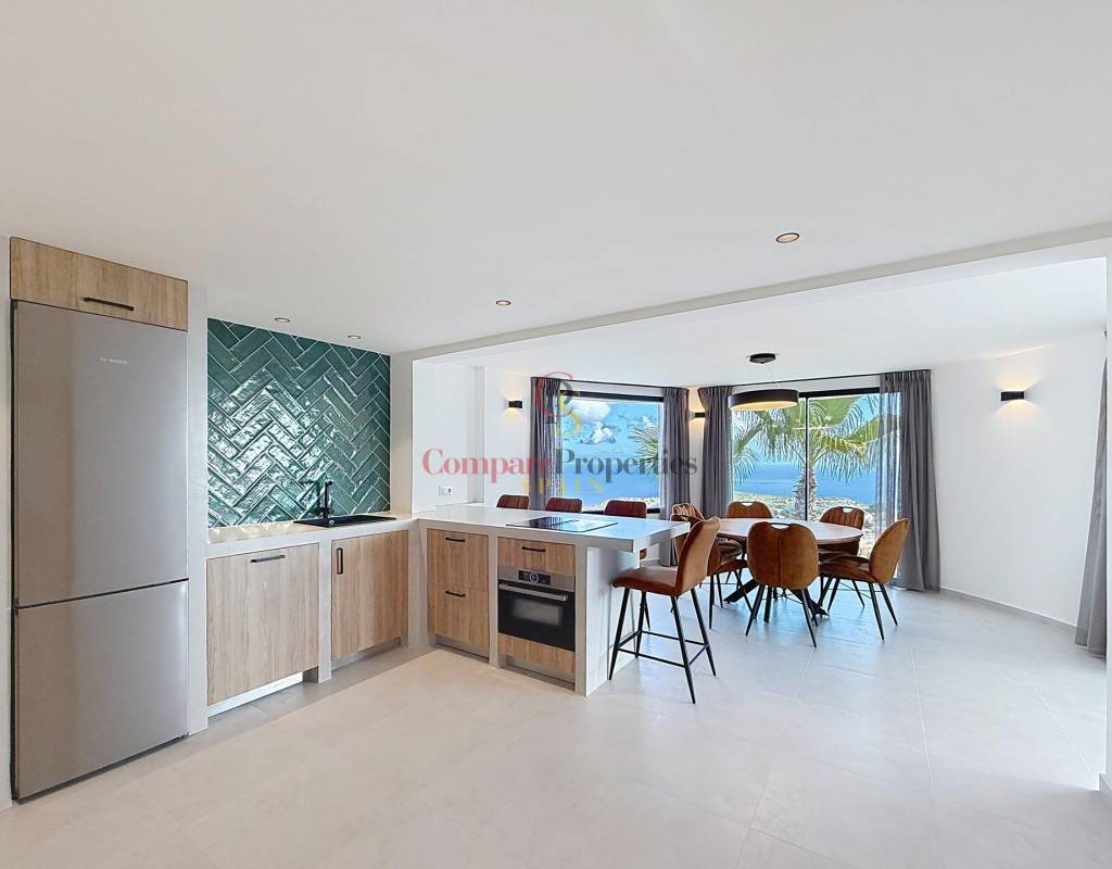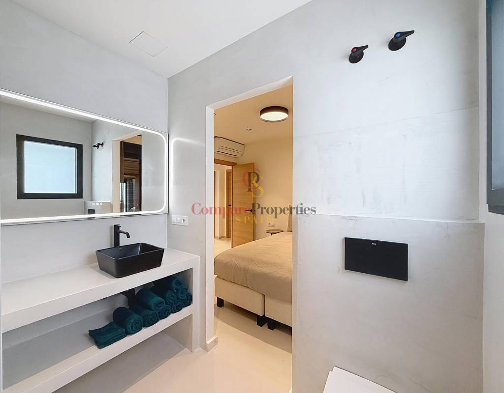 Design hybride : intérieur contemporain, extérieur méditerranéen-ibicencoCette villa combine à la perfection l\'architecture traditionnelle de la Costa Blanca, avec ses murs blancs et ses lignes douces, et un intérieur entièrement rénové dans un style moderne, lumineux et fonctionnel.