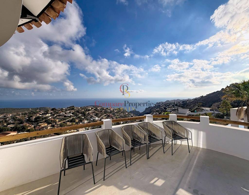 Villa rénovée avec vue panoramique sur la mer à Dalias – Cumbre del SolUne maison moderne au charme méditerranéen entre Jávea et MorairaNous vous présentons une villa récemment rénovée, neuve, avec vue panoramique sur la mer Méditerranée et piscine privée, située dans le quartier résidentiel de Dalias, au sein du prestigieux lotissement Cumbre del Sol, à Benitachell, entre Jávea et Moraira.