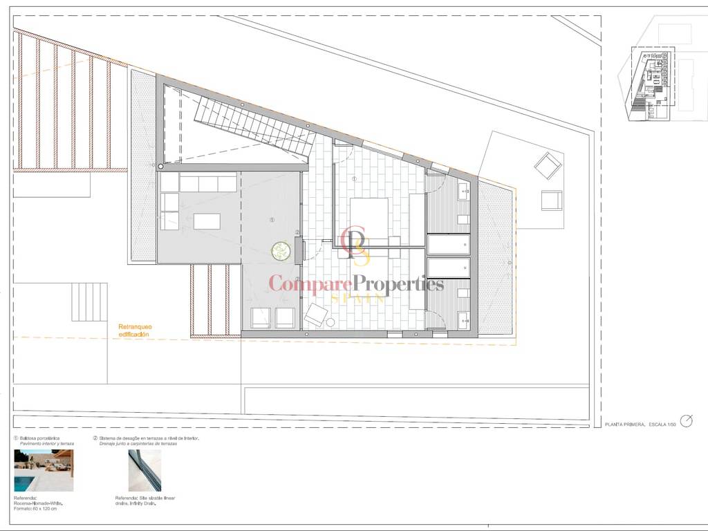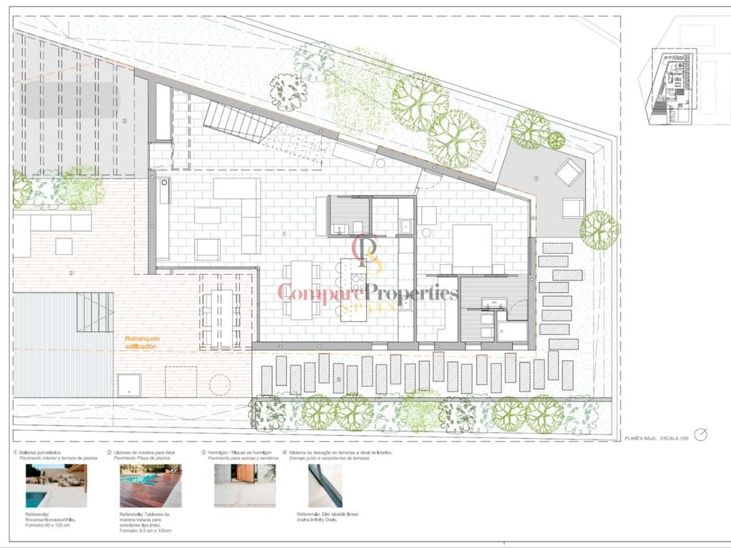 La villa dispose d’un spacieux salonsalle à manger avec de grandes fenêtres de sécurité et un accès direct au jardin. La cuisine ouverte avec îlot central est équipée d’appareils Bosch. Il dispose de trois chambres avec salles de bains privatives, placards et finitions de luxe, ainsi que des toilettes pour plus de confort.