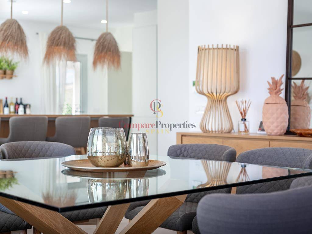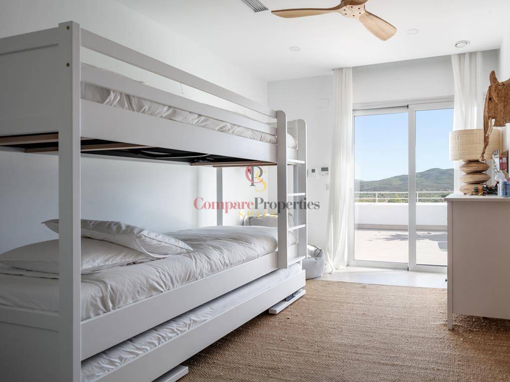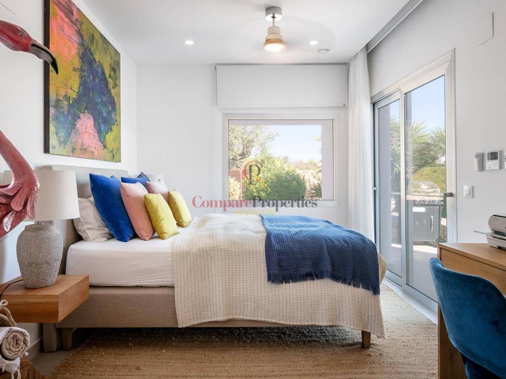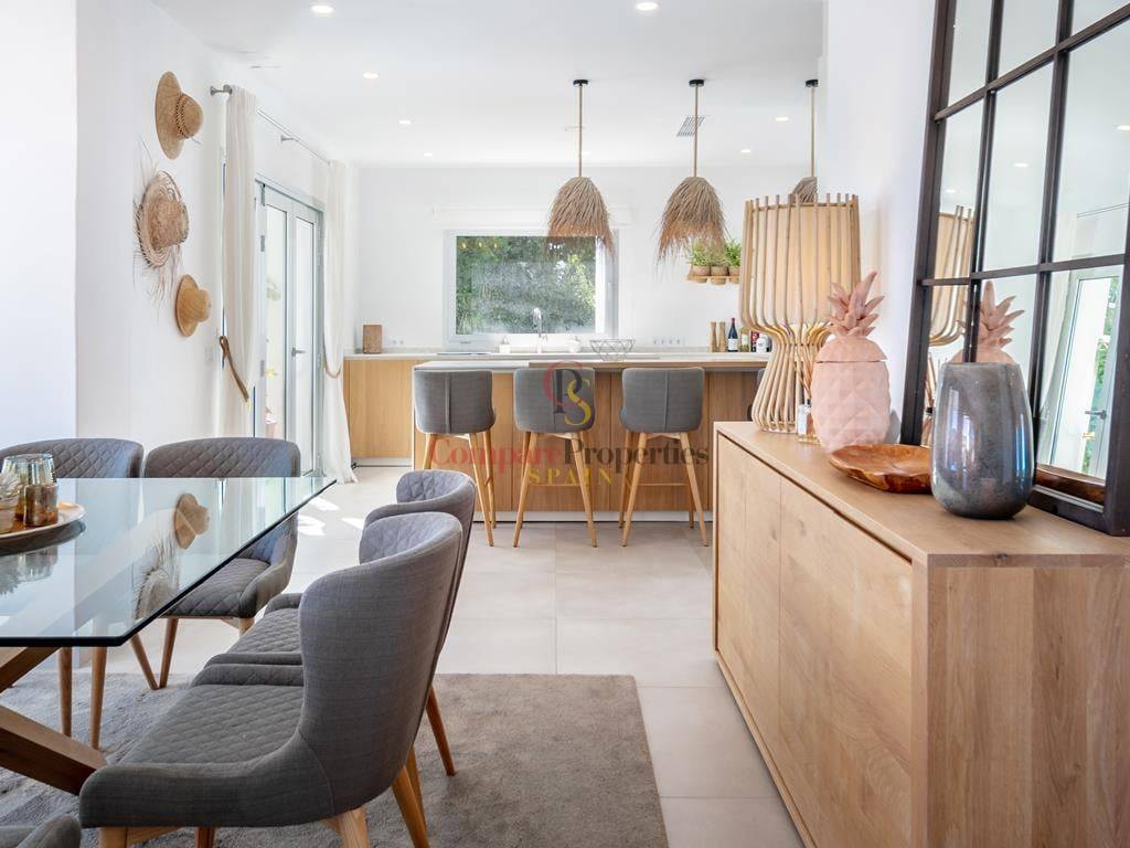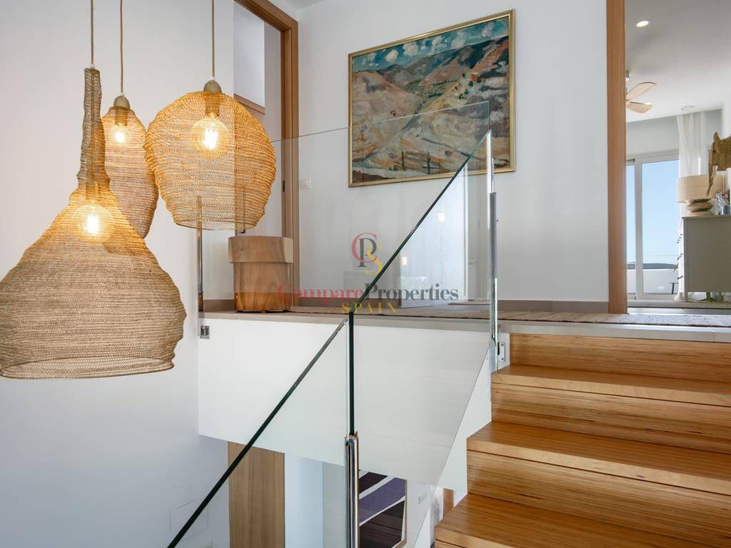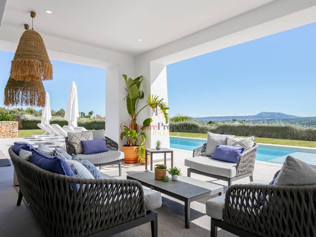 Villa moderne à Jávea, dans le secteur du Montgó, construite en 2019 sur une parcelle de 1 511 m². Cette villa de standing de 327 m², dont la décoration a été réalisée par la renommée Jessica Bataille, s\'organise sur deux niveaux. Au rez-de-chaussée se trouvent un salon-salle à manger, une cuisine ouverte avec un espace buanderie, une chambre avec salle de bain en suite et des toilettes. À l\'étage, trois chambres avec salles de bain en suite donnent accès à une vaste terrasse avec un espace lounge pour profiter des belles vues sur la vallée, exposée au sud.