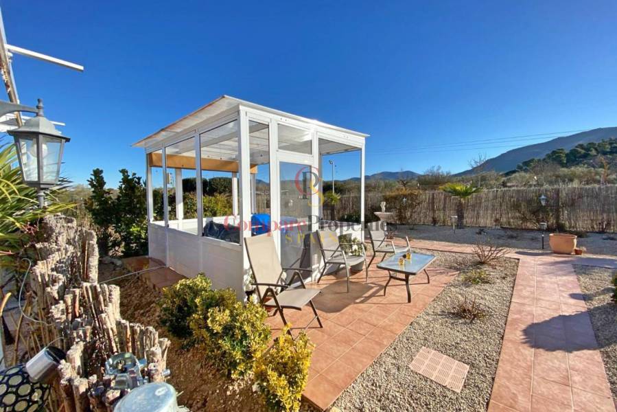 Dit perfect onderhouden huis ligt in een rustige, maar zeker niet afgelegen locatie op een paar minuten rijden van het dorp Biar. Belangrijk is het gegeven dat alle vertrekken in het huis zich op één niveau begeven. Bij binnenkomst via de ruime entree treft men een mooie, compleet geëquipeerde open keuken aan. Aan de rechterzijde bevindt zich de grote, zonnige zitkamer met open haard en twee terrassen aangrenzend: één overdekt voor de schaduw in de zomer en de ander met een zwembad van 4 x 5 meter.