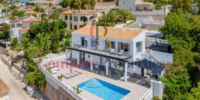 Deze hoogwaardige, gerenoveerde villa is gelegen op een bevoorrechte locatie in Maryvilla, Calpe met een prachtig panoramisch uitzicht op de kustlijn, de Middellandse zee en de Peñon de Ifach [rots van Calpe]. Deze villa is verdeeld over twee afzonderlijke verdiepingen en ligt op een hellend perceel met in totaal zes terrassen om van het geweldige uitzicht te genieten. Het hoogste niveau van de villa bevindt zich op de eerste verdieping, die bestaat uit een woon / eetkamer, keuken, twee slaapkamers en een badkamer, deze verdieping is omgeven door drie terrassen. De benedenverdieping, met aparte ingang, bestaat uit een woon- / eetkamer, een keuken, een slaapkamer en een badkamer. De eigenschap heeft ook kelder gebruikt als een bijkeuken die kan worden uitgebreid. Buiten is er een groot terras met een luxe 11 x 5m zwembad, buitendouche warm / koud, zwembad toilet, zomerkeuken met barbecue en een functie "rock grot" met een prachtig uitzicht.- Hoofdpunten:- Bovenverdieping met 2 slaapkamers- Appartement met 1 slaapkamer- Panoramisch uitzicht op zee- Uitzicht op zee vanuit alle kamers- Glazen naya- Kwaliteit, moderne badkamers en keukens- Smaakvol ingericht met meubilair van topkwaliteit- Gunstig gelegen ten opzichte van het stadscentrum, de jachthaven en de zandstranden- Centrale verwarming door warmtepomp- Airconditioning- Luxe zwembad van 11 x 5m- Mooie zomerkeuken met zithoek en grot- Dubbele garage met trap naar het terras bij het zwembad en appartementen