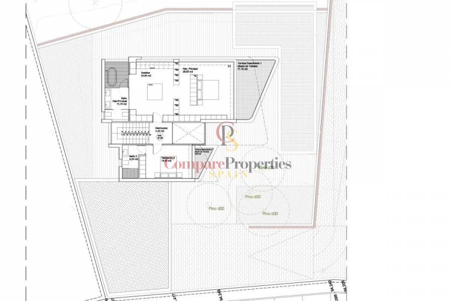 Het huis heeft alle voorzieningen en kwaliteit. Vloerverwarming, luchtkanalen, inbouwkasten, een grote kleedkamer van 21m2, automatische irrigatie, enz ... br>br>